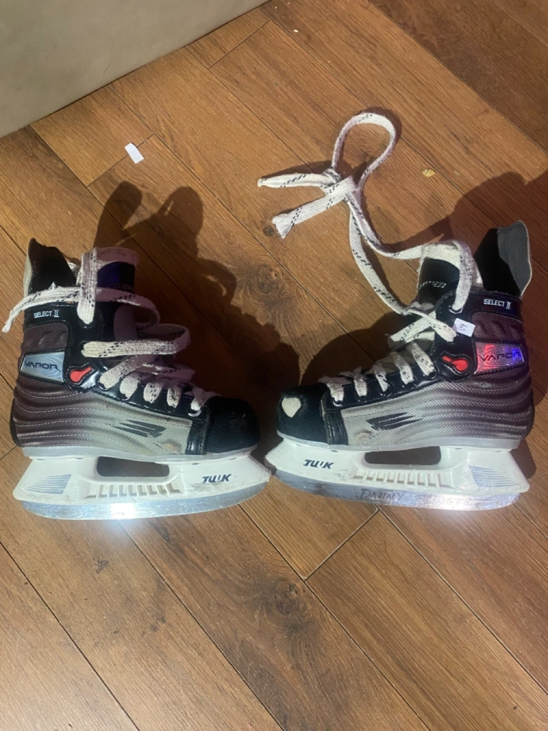 Selling a pair of size 5 Bauer Vapor X Select ice skates and elbow pads. The skates have some use left in them. The elbow pads are size S/P. and shin pads are 8”