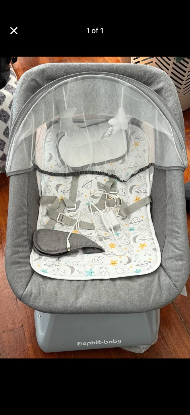 This is an Elephtt-baby baby rocker in great condition! It has a cute design with moons and stars. It has a gray color.
