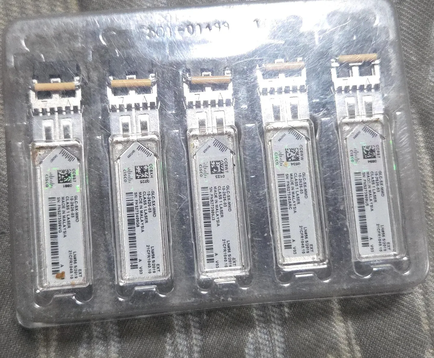 Selling a set of Cisco GLC-SX-MMD transceiver modules. These are new and still in their original packaging. Each module is a Class 1 Laser product, manufactured in Malaysia.