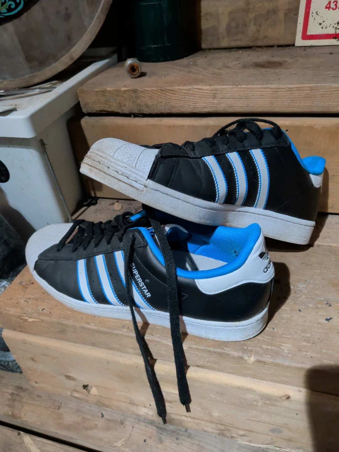 Buy & SellAdidas Superstar Black/BlueAdidas Superstar Black/Blue$20Selling a pair of Adidas Superstars in black and blue. They're in good condition and ready for a new owner!BrandAdidasWHERE TO MEETMount pleasantView MapSELLERstephiMount Pleasant211 review1 chats·0 favorites·31 viewsSEND CHAT TO SELLERHi stephi! I’m interested in your listing.Hi stephi! I’m interested in your listing.Get the Karrot app to chatSign In to chat