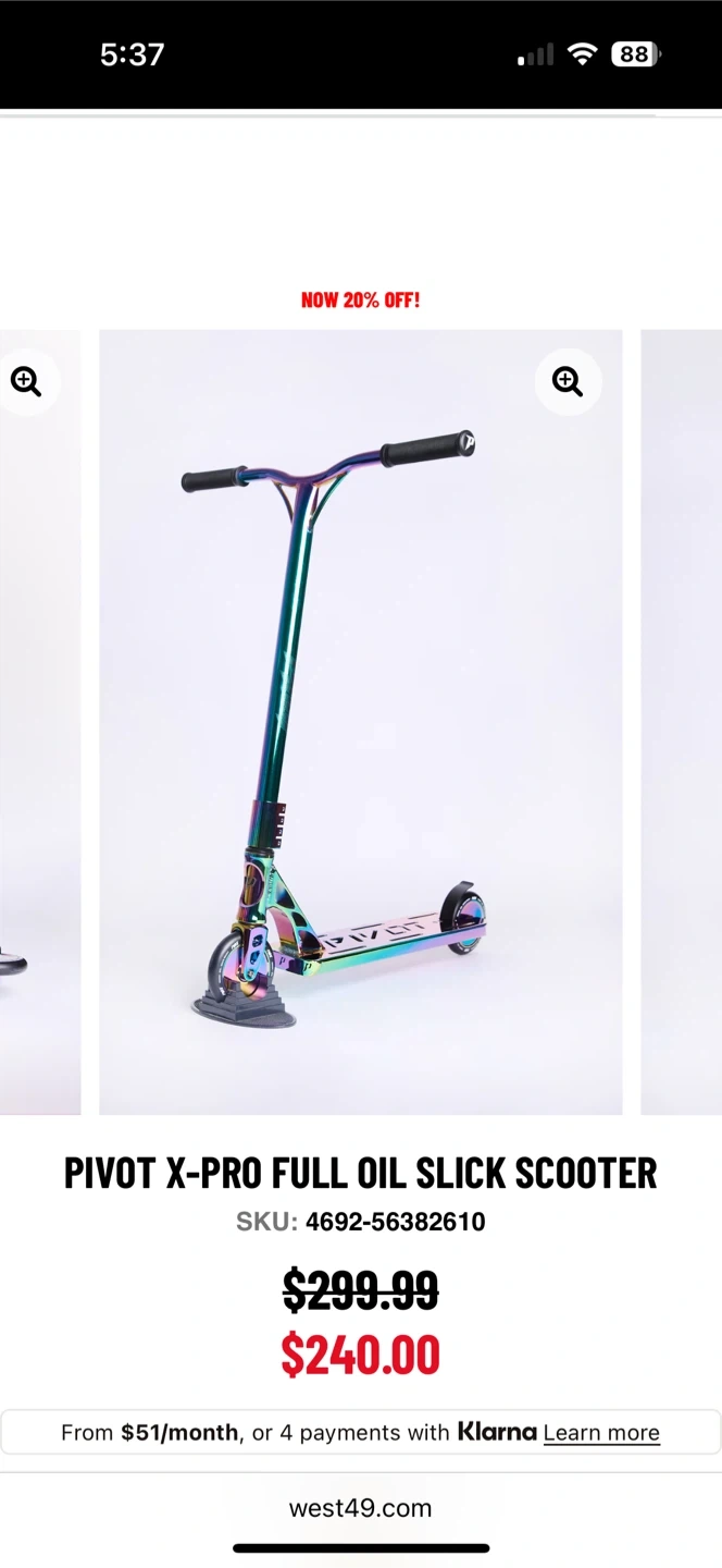 Selling a brand new Pivot X-Pro Full Oil Slick Scooter, still in its original box! The box includes all original components and instructions. The scooter features a supported T-shape bar of 23.6" x 23.6" and a deck size of 20.5" x 4.7".