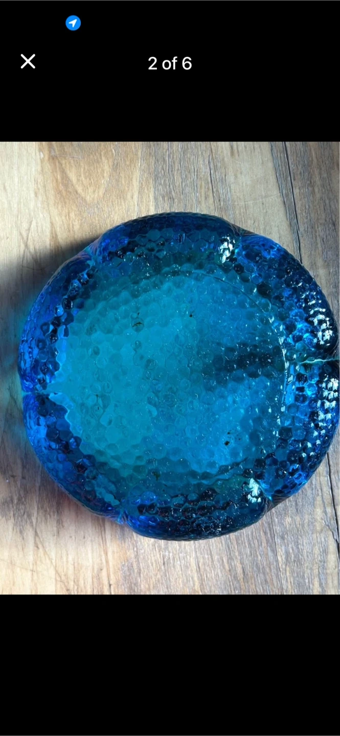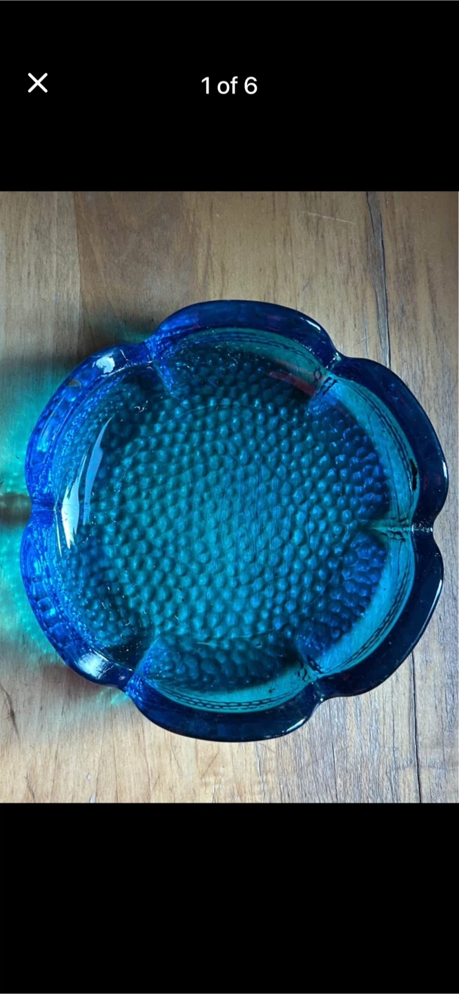 $8 Blenko cobalt Blue Lotus Pebble Art Glass dish change trinket MCM glass ashtray vintage 60s 70s