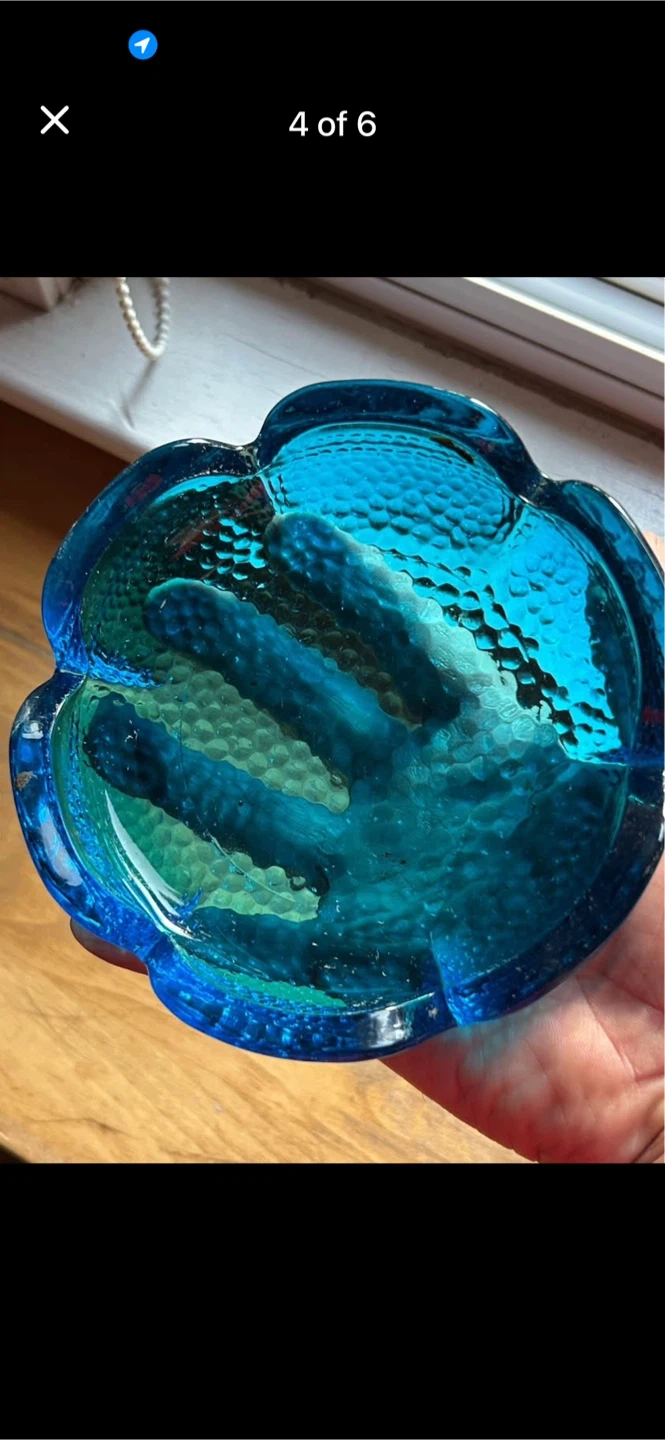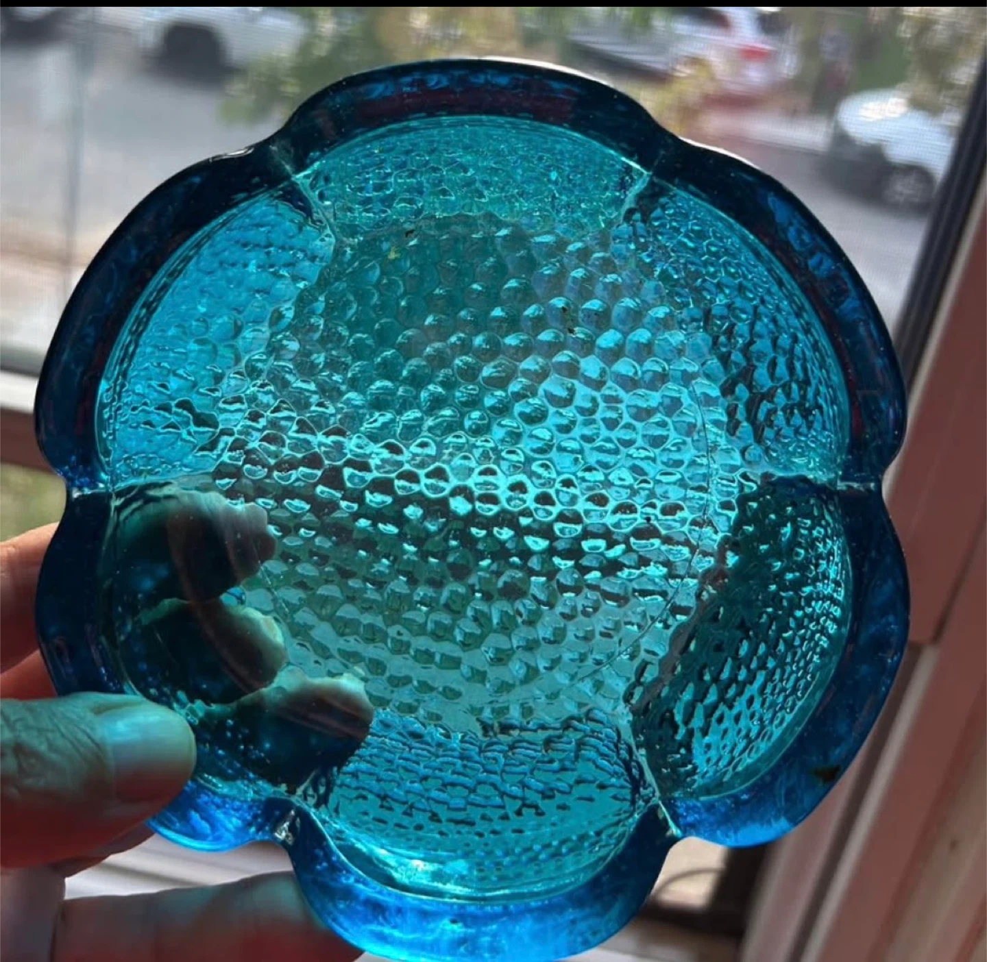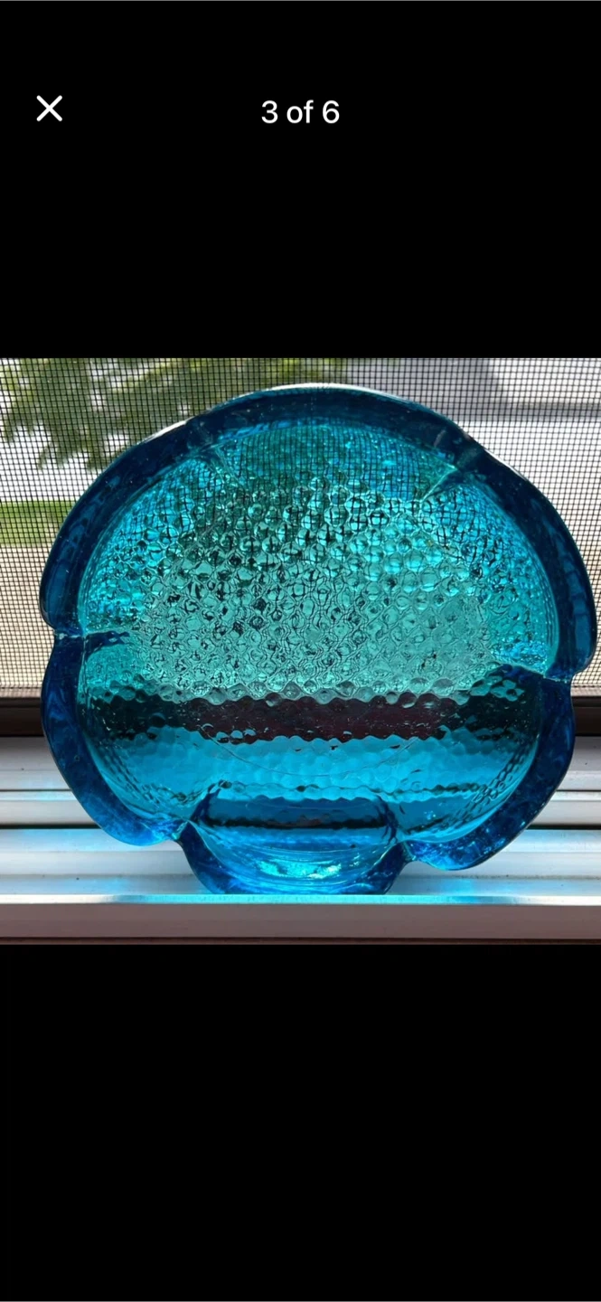 $8 Blenko cobalt Blue MCM bowl Lotus Pebble Art Glass dish