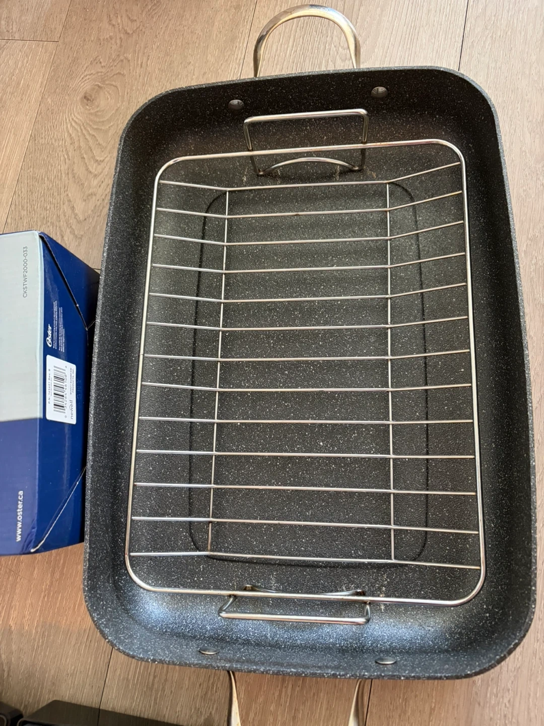 Buy & SellOster Roasting Pan with RackOster Roasting Pan with Rack$30Selling an Oster roasting pan that comes with a rack. It's in great shape and ready for your next roast!ConditionLike newWHERE TO MEETMaple RidgeView MapSELLERAniHaney181 review0 chats·0 favorites·10 viewsSEND CHAT TO SELLERHi Ani! I’m interested in your listing.Hi Ani! I’m interested in your listing.Get the Karrot app to chatSign In to chat