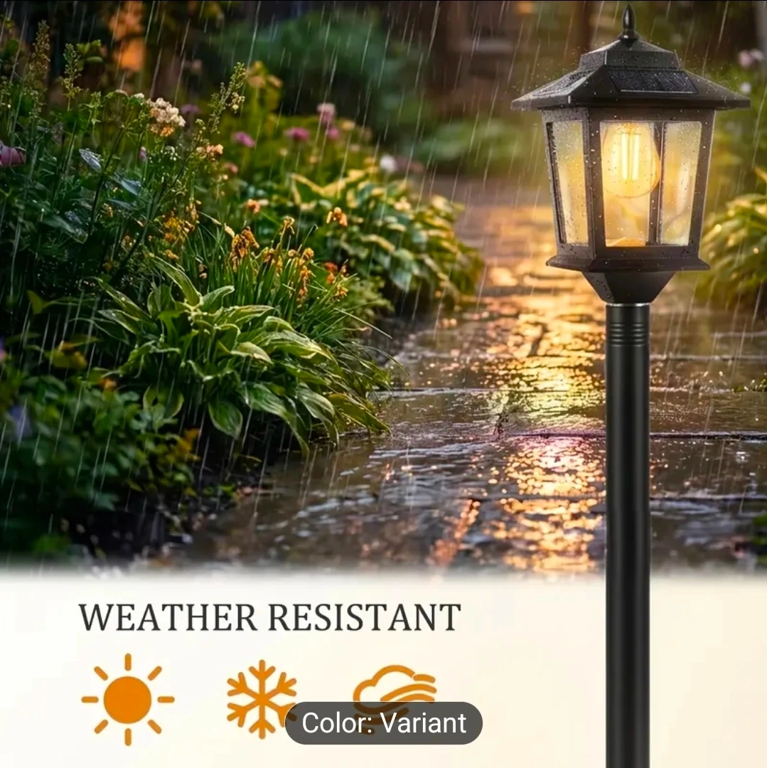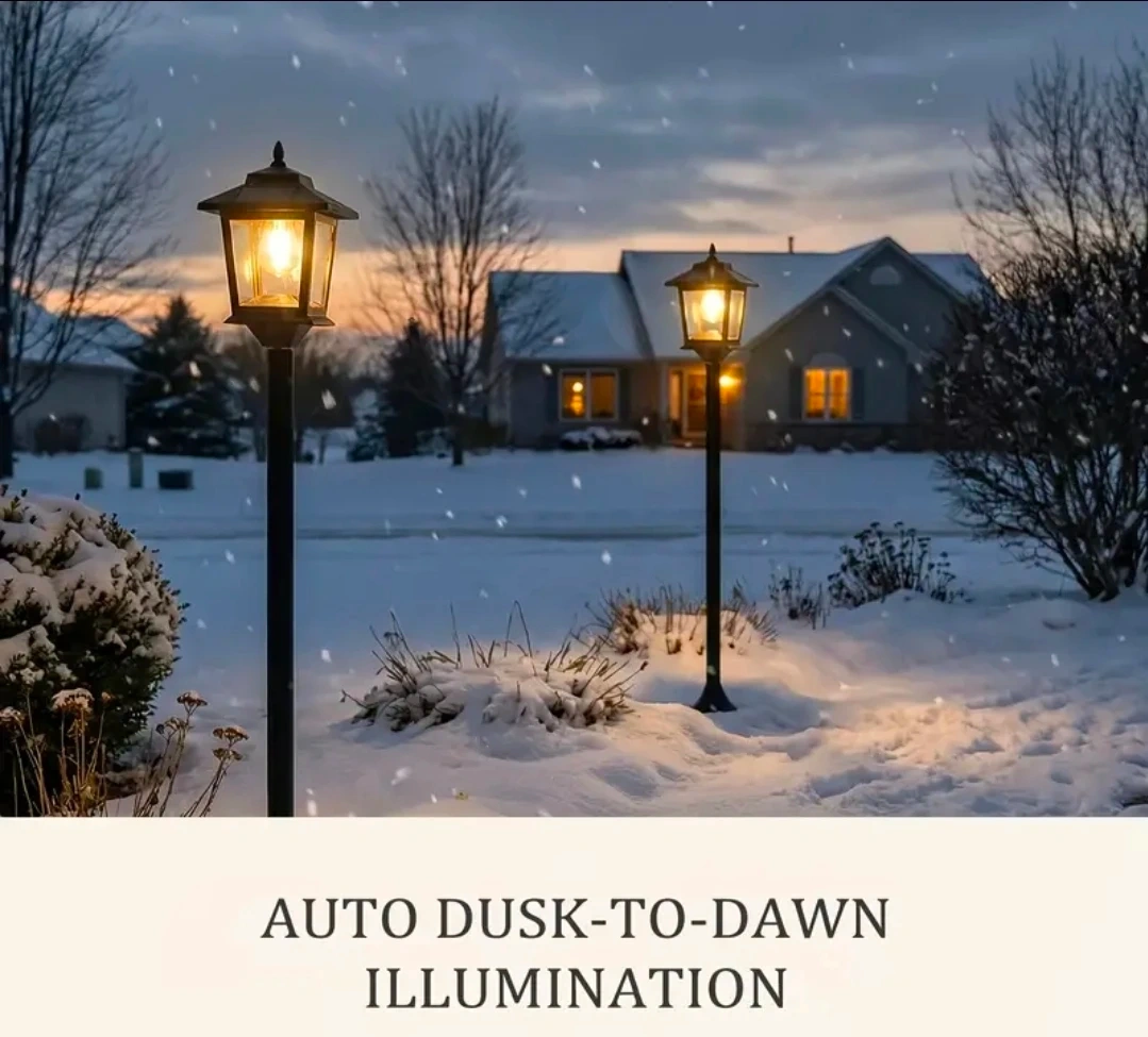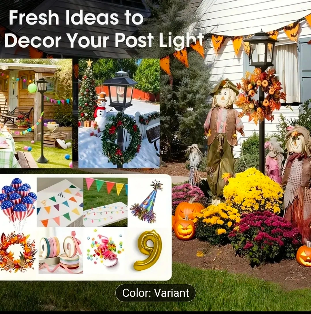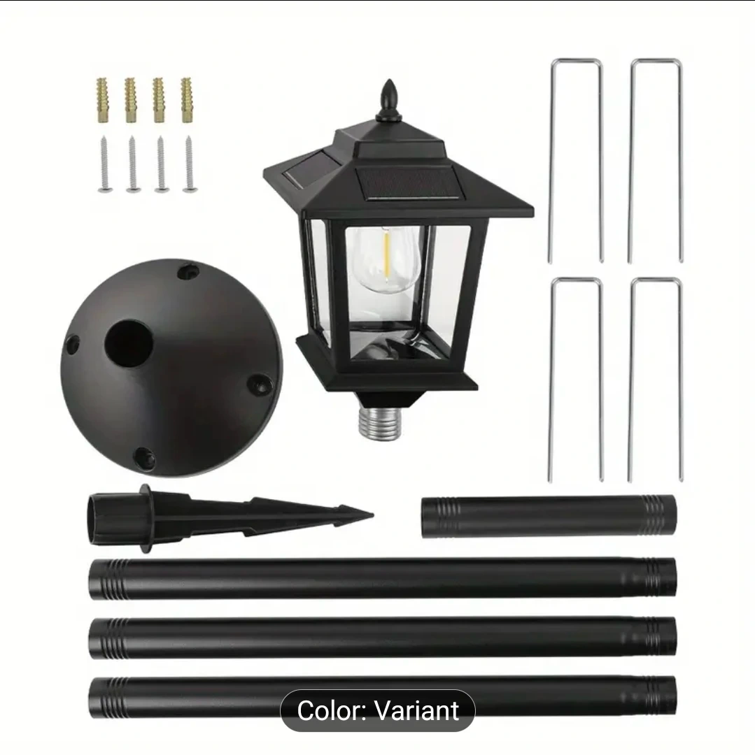 This outdoor lamp post light is perfect for adding a touch of elegance to your space! It lasts for 10 hours on a full solar charge and features auto dusk-to-dawn illumination. The lamp is made with durable materials and is weather resistant. It uses an LED E26 bulb and has 360° solar charging.