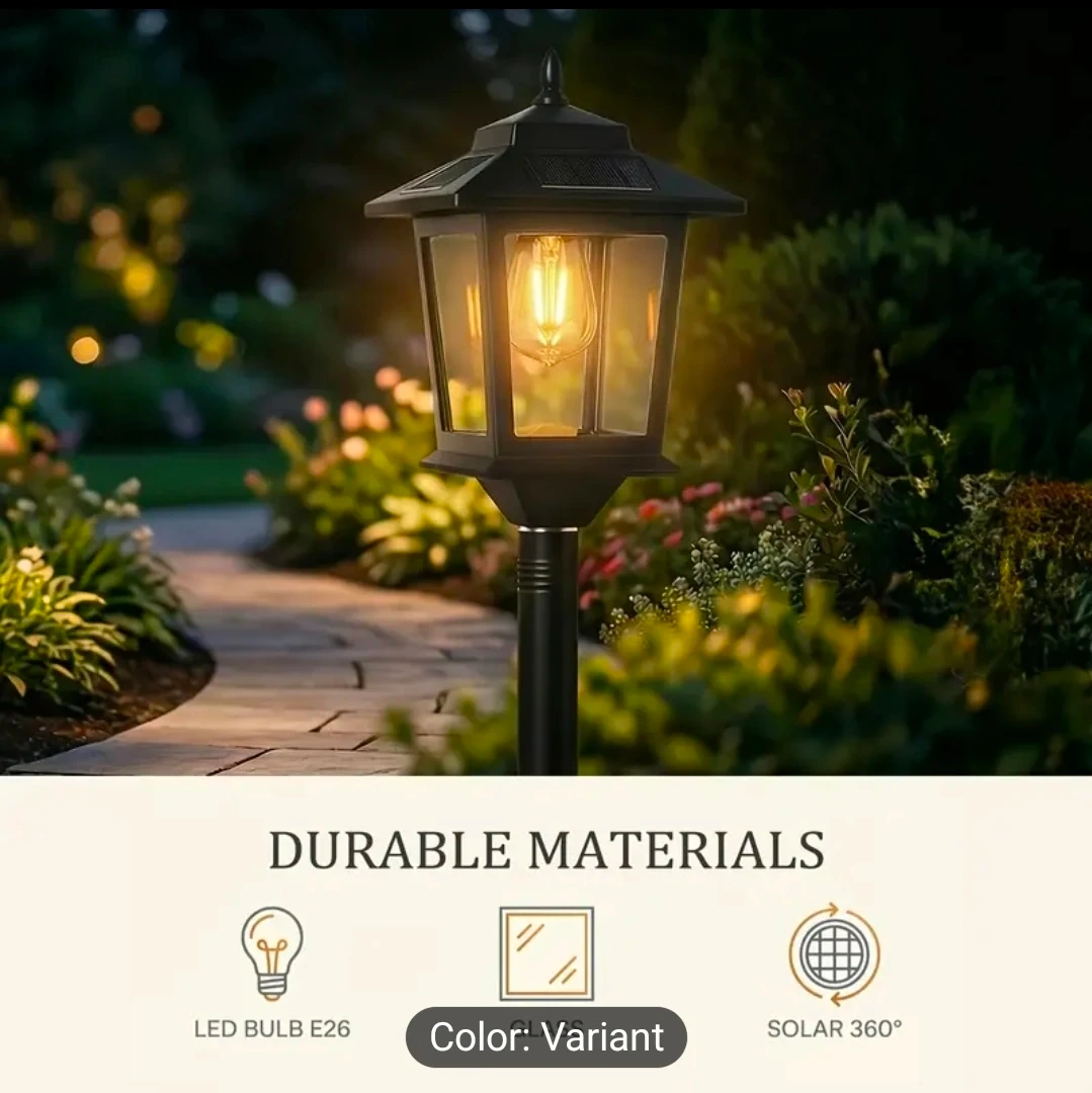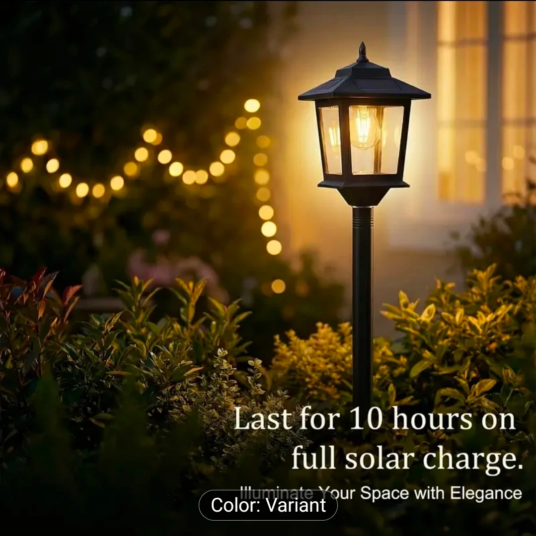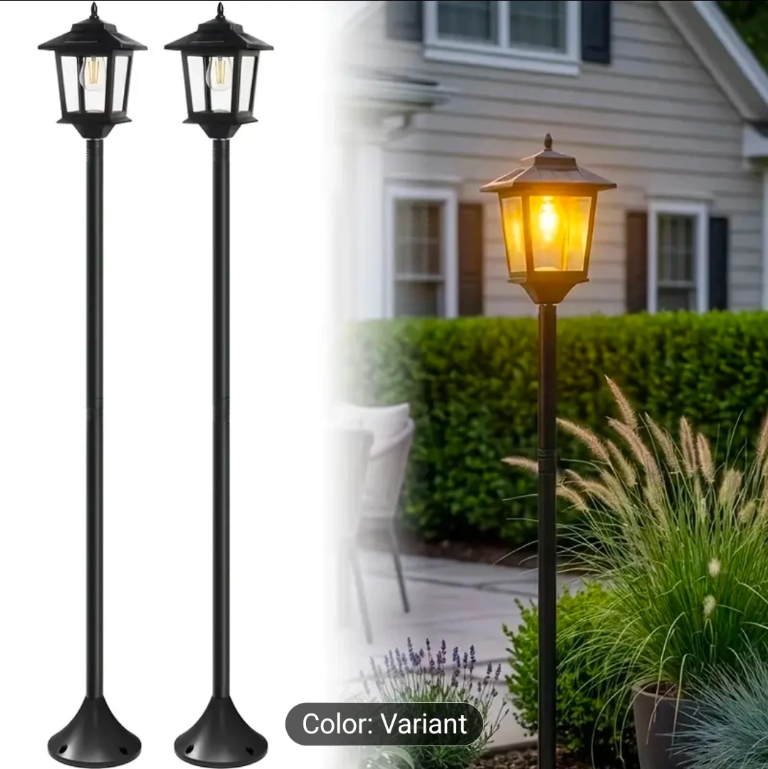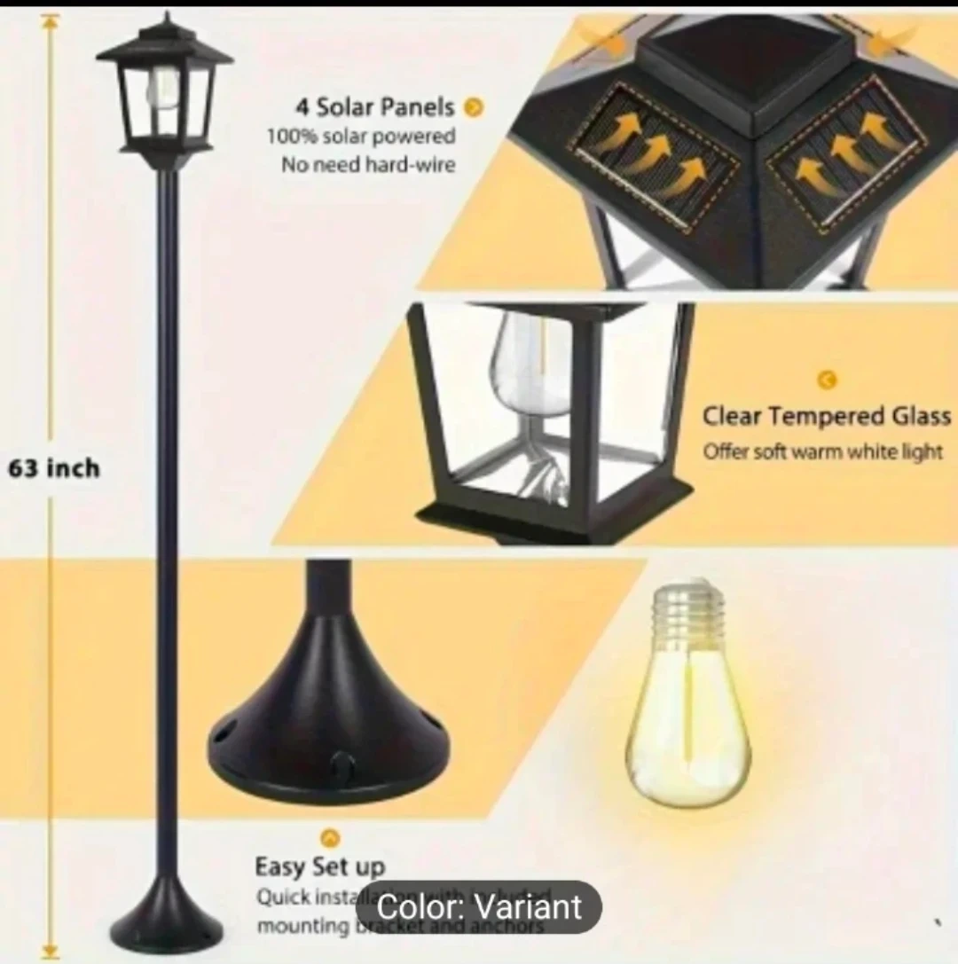 This outdoor lamp post light is perfect for adding a touch of elegance to your space! It lasts for 10 hours on a full solar charge and features auto dusk-to-dawn illumination. The lamp is made with durable materials and is weather resistant. It uses an LED E26 bulb and has 360° solar charging.