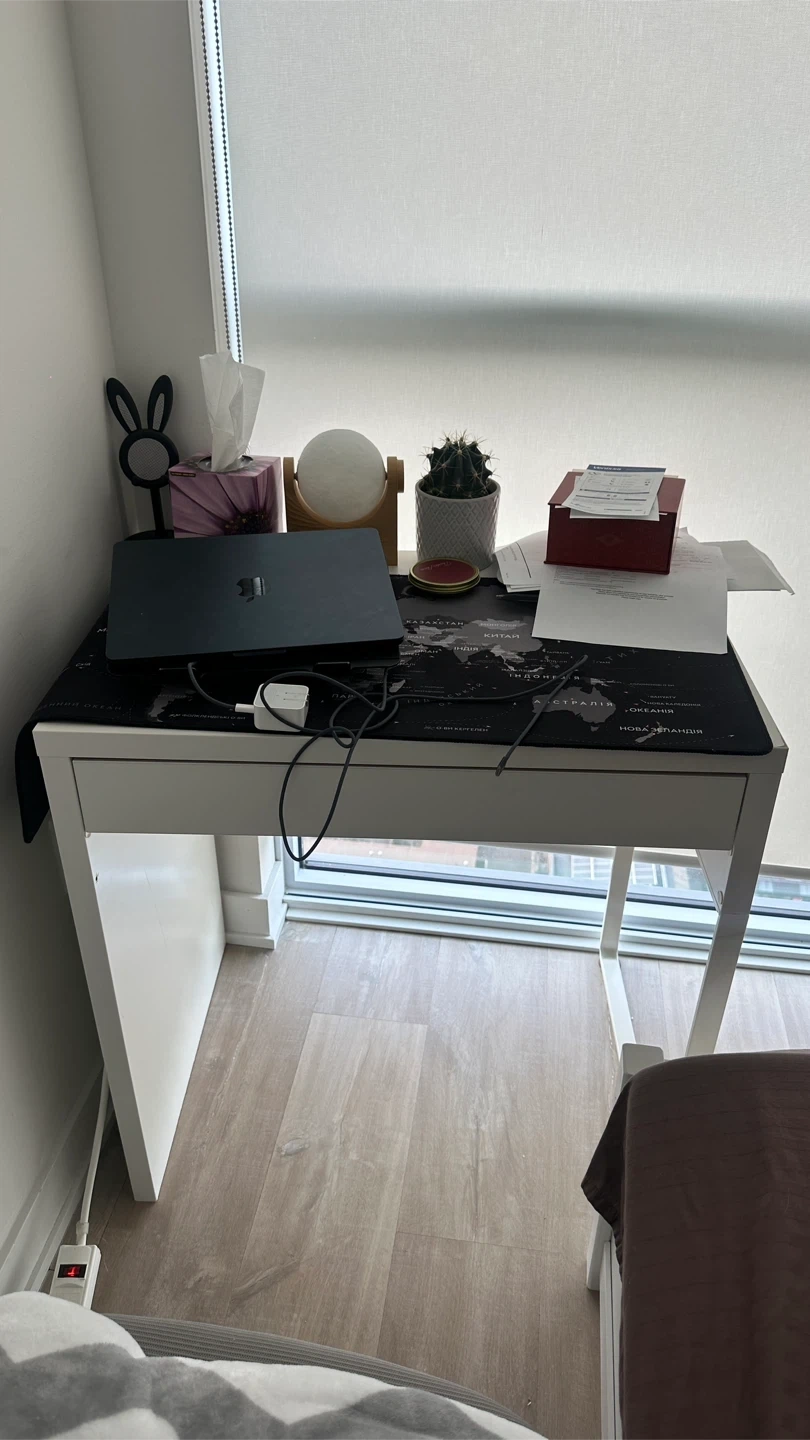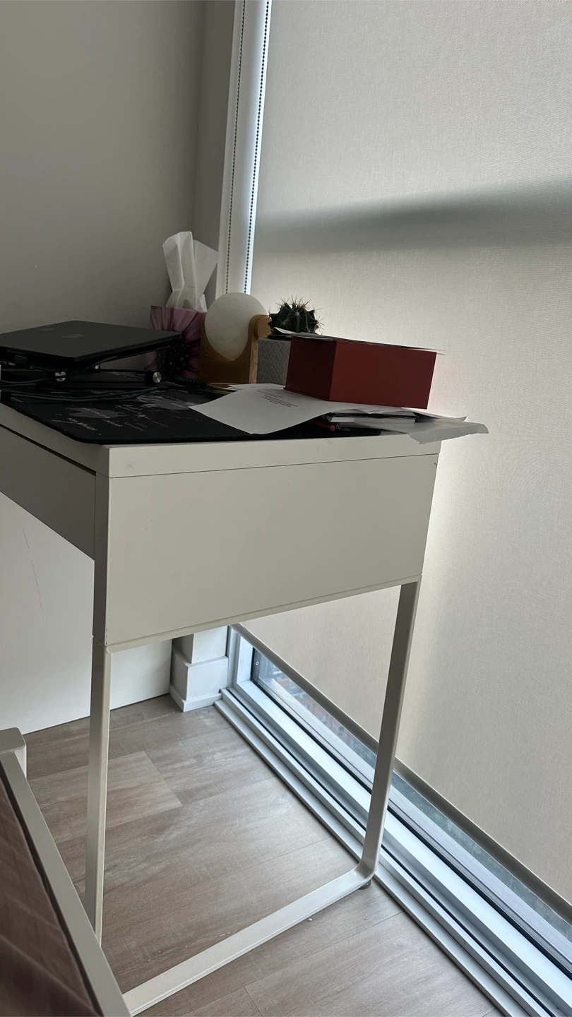 Selling an IKEA desk. It is good as new, the drawer holds a pretty good amount of weight, and fits perfectly in small areas.