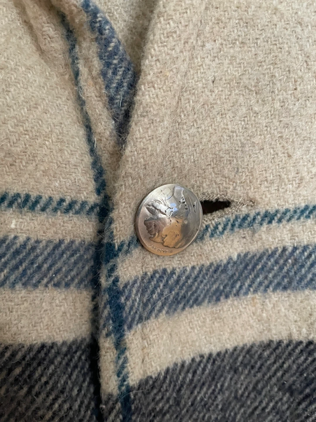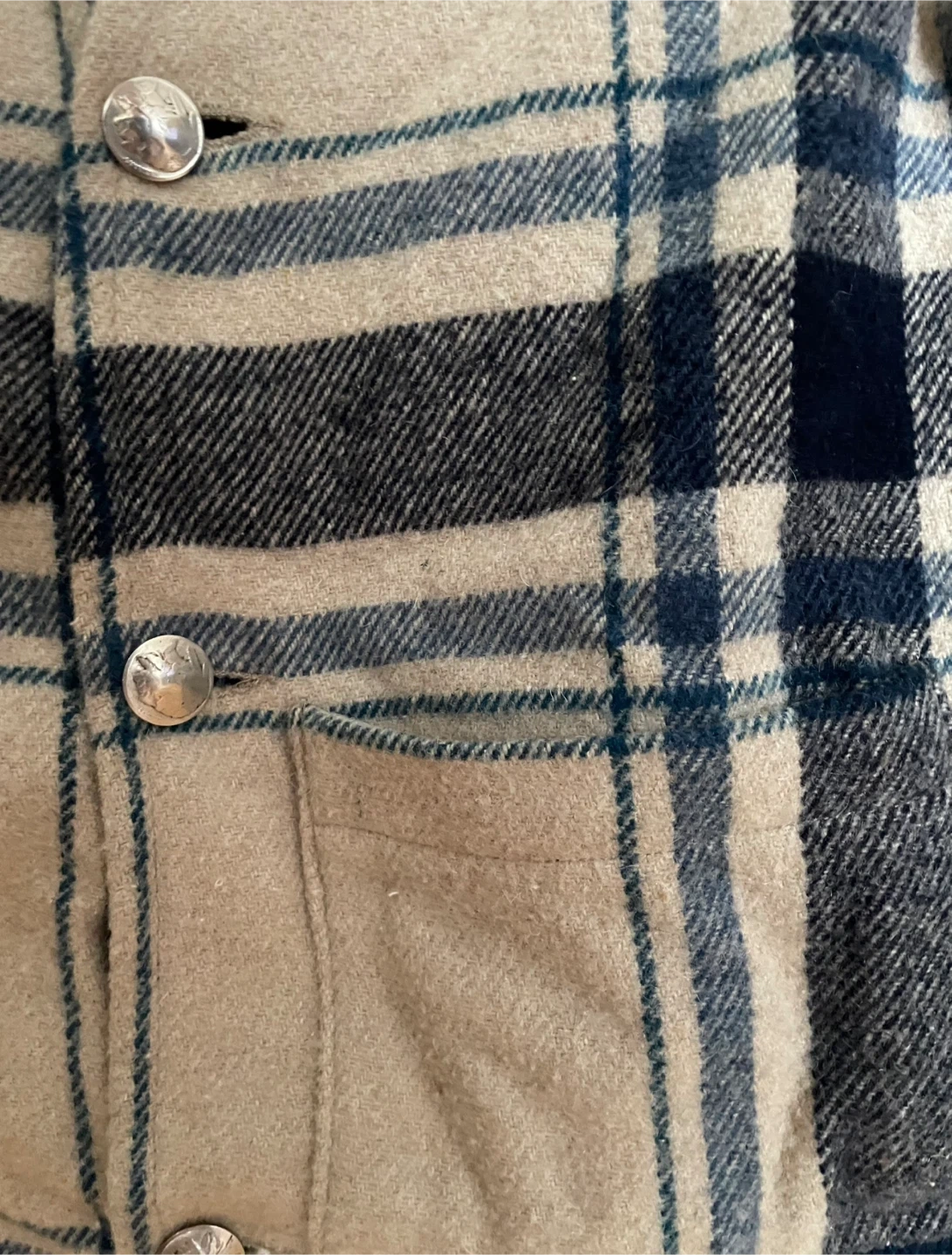 Amazing, rare Vintage Roots Women’s Plaid Wool Vest. Cream And Blue With Great Buttons. Size: M. Just Dry Cleaned.