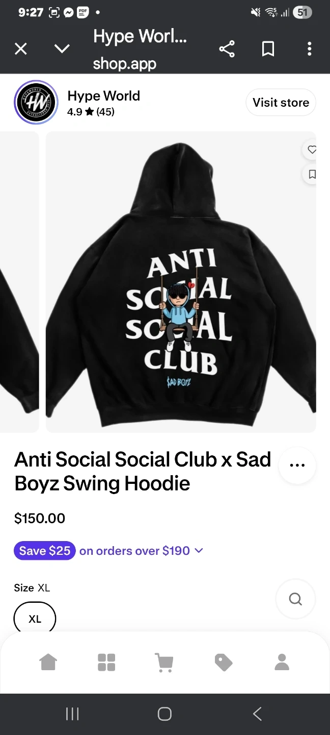 I'm selling an Anti Social Social Club x Sad Boyz Swing Hoodie. It's in great condition and a size XL! Retails for $150. Feel free to message me if you're interested!