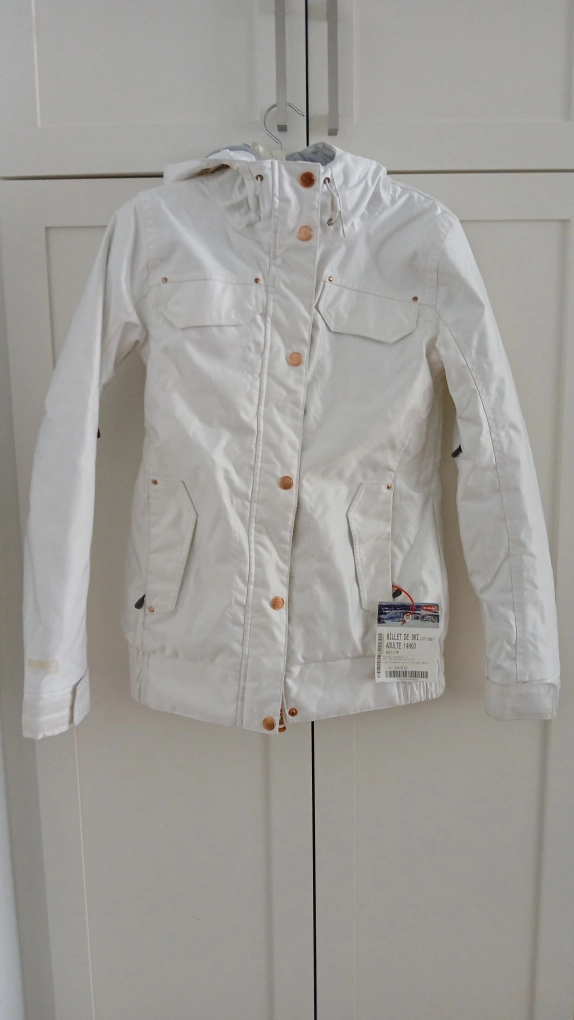Selling a Roxy ski/snowboard jacket in white, size small. It's in great condition and ready for the slopes! Perfect for staying warm and stylish while enjoying winter sports