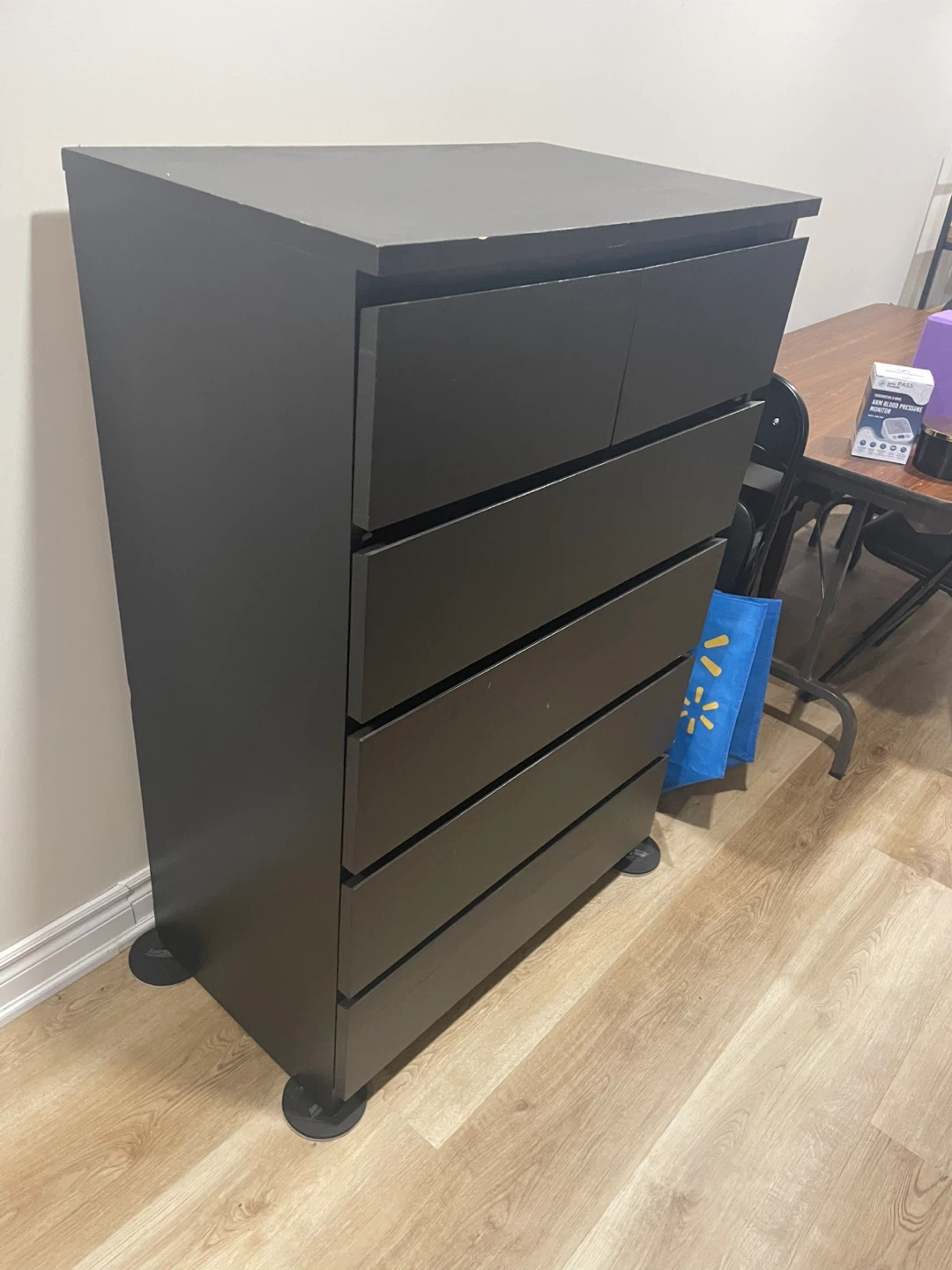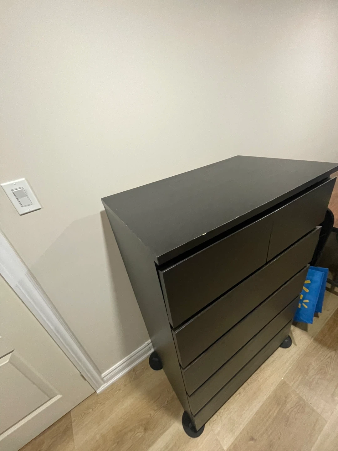Selling a black IKEA Hemnes dresser. It has six drawers, has a couple of chips and scratches but is in good condition. Perfect for adding storage to any room!