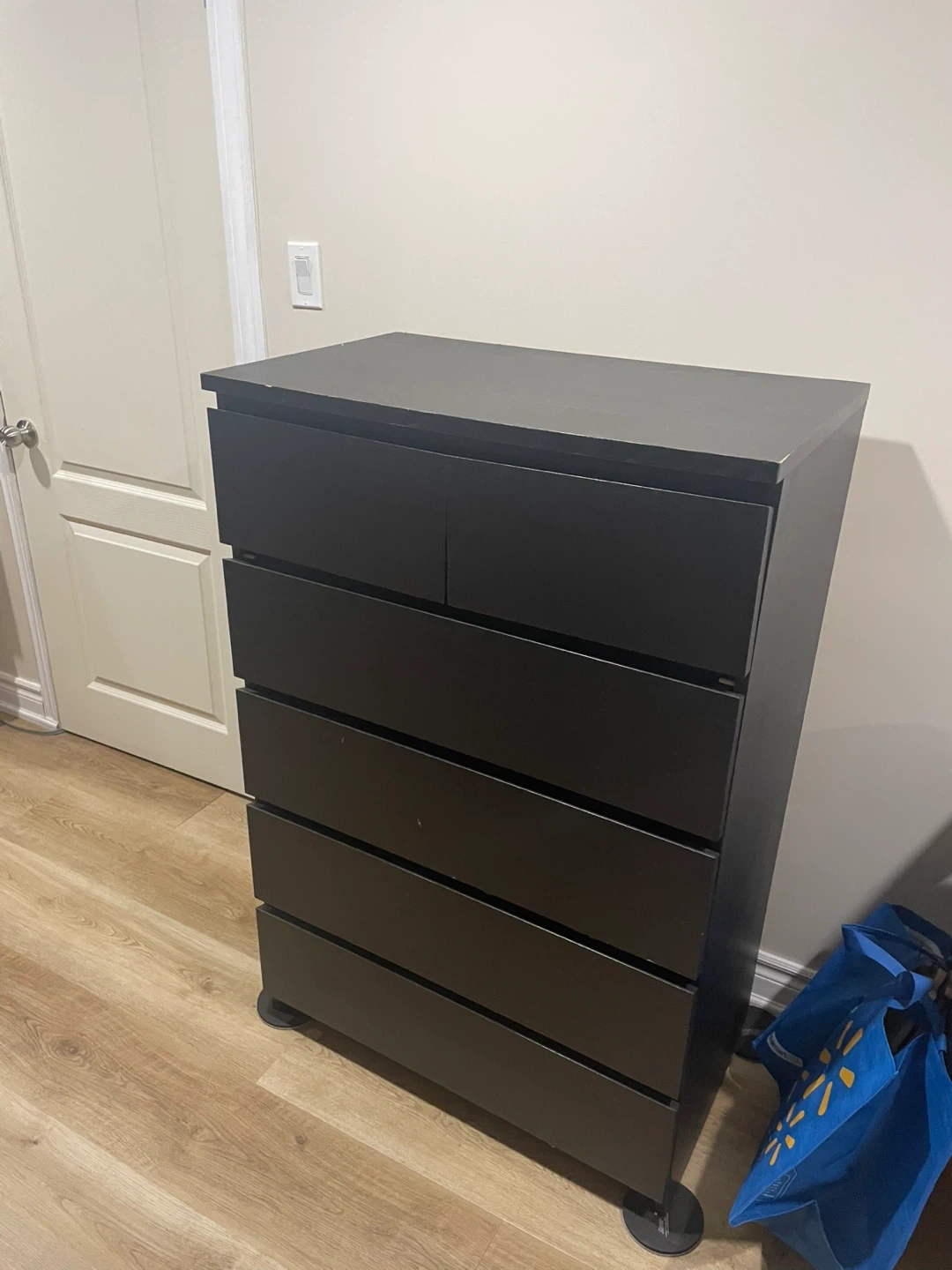 Selling a black IKEA Hemnes dresser. It has six drawers, has a couple of chips and scratches but is in good condition. Perfect for adding storage to any room!