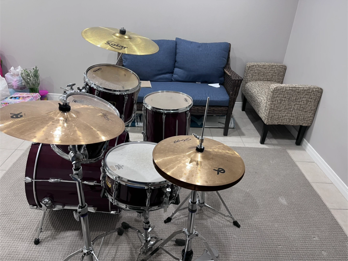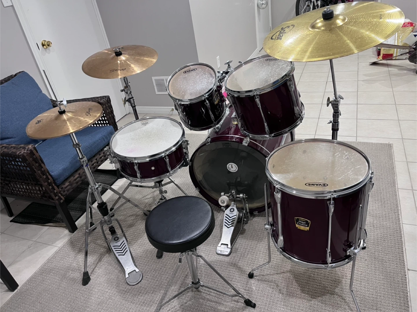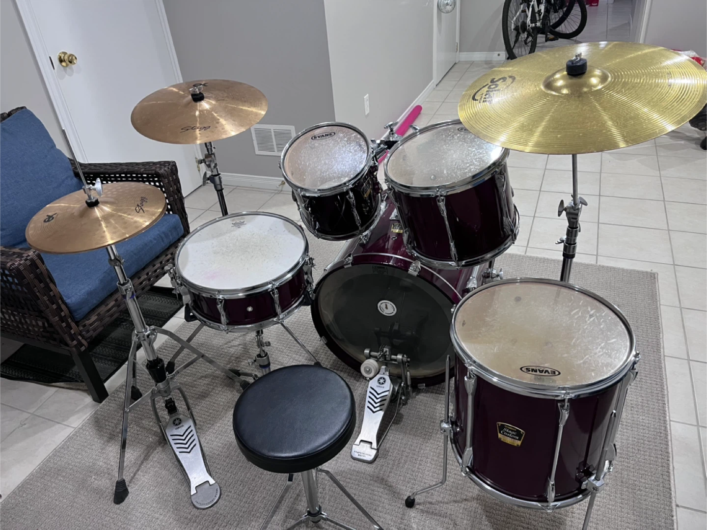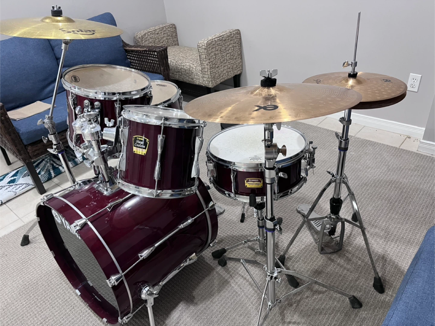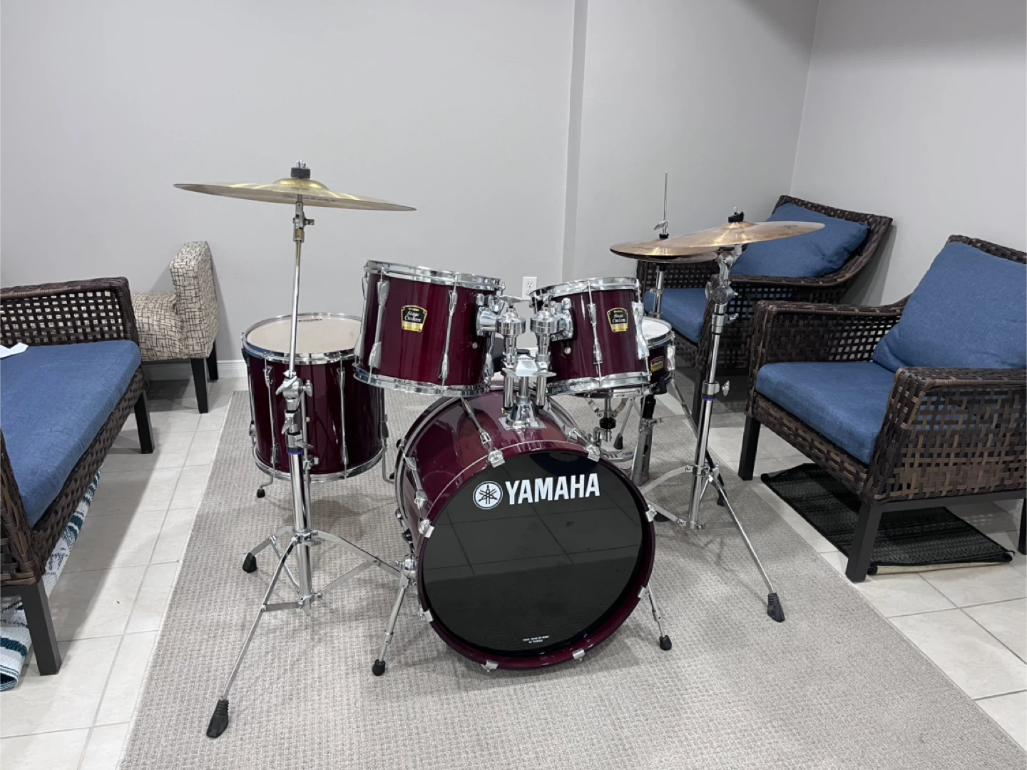 Selling a Yamaha Stage Custom Advantage drum set! It's in good condition and ready for a new musician to enjoy. This set includes drums, cymbals, stands, and a stool. Perfect for someone looking to get started or upgrade their current kit