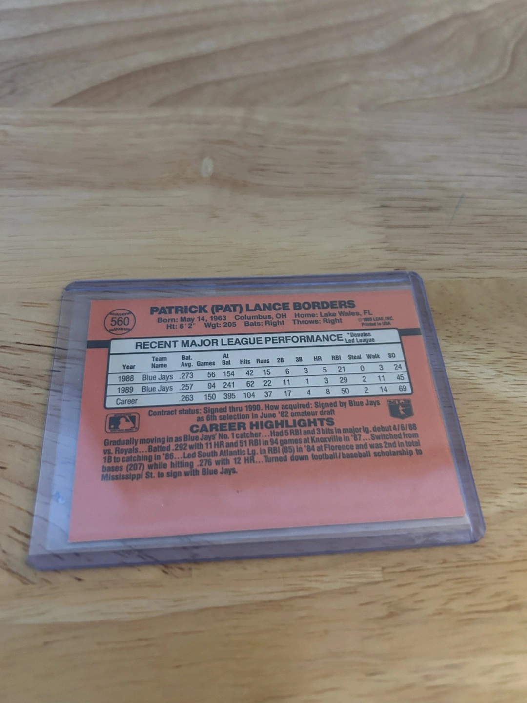 Selling a 1990 Donruss autographed baseball card of Pat Borders, catcher for the Toronto Blue Jays. The card is in great condition and comes in a protective case. A great addition to any Blue Jays or baseball card collection
