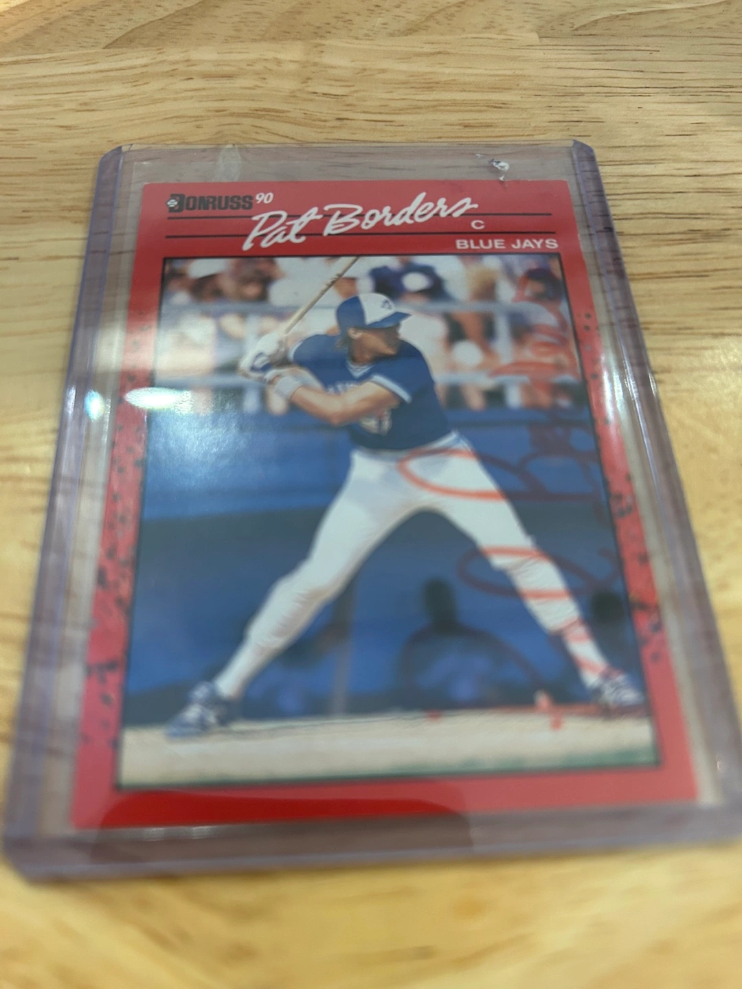 Selling a 1990 Donruss autographed baseball card of Pat Borders, catcher for the Toronto Blue Jays. The card is in great condition and comes in a protective case. A great addition to any Blue Jays or baseball card collection