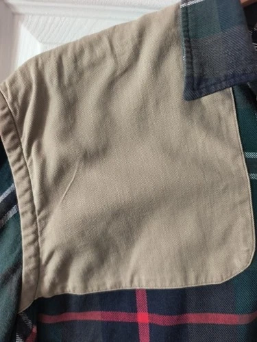Details: Quilted tan shooter’s patch on the right shoulder and matching oval elbow patches.