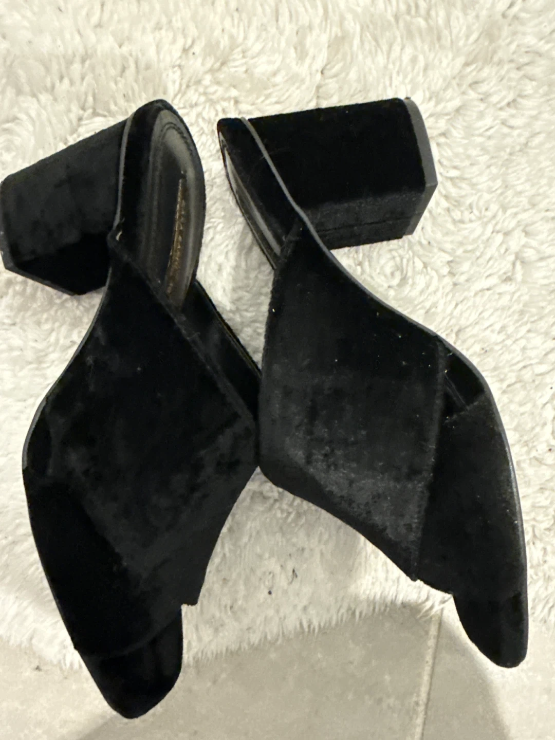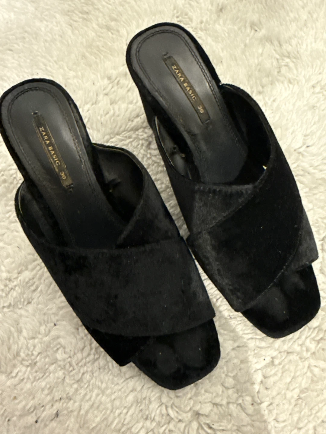 Selling a pair of Zara Basic black velvet heels in size 36. They're in good condition and ready for a new owner! Great for any Christmas party or any outing that requires you to dance because the heel is very secure great for Christmas parties, birthday parties or a night out for the new year eve or New Year’s Day! it has availability lightweight finish.