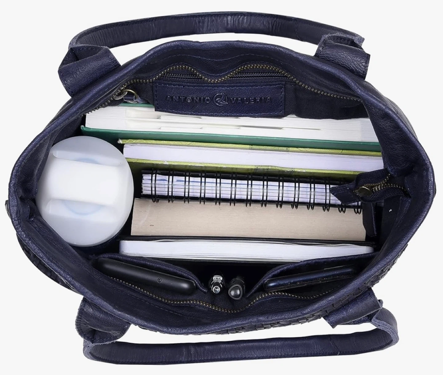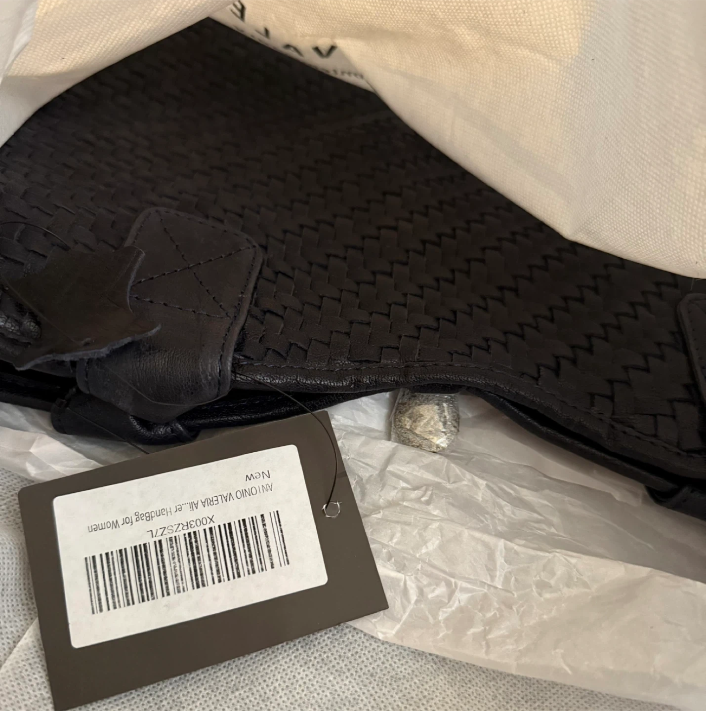 This is a brand new Antonia Valeria Alice braided leather handbag in blue. It's a stylish and practical accessory, perfect for everyday use. The bag features a beautiful woven leather design and sturdy leather straps.