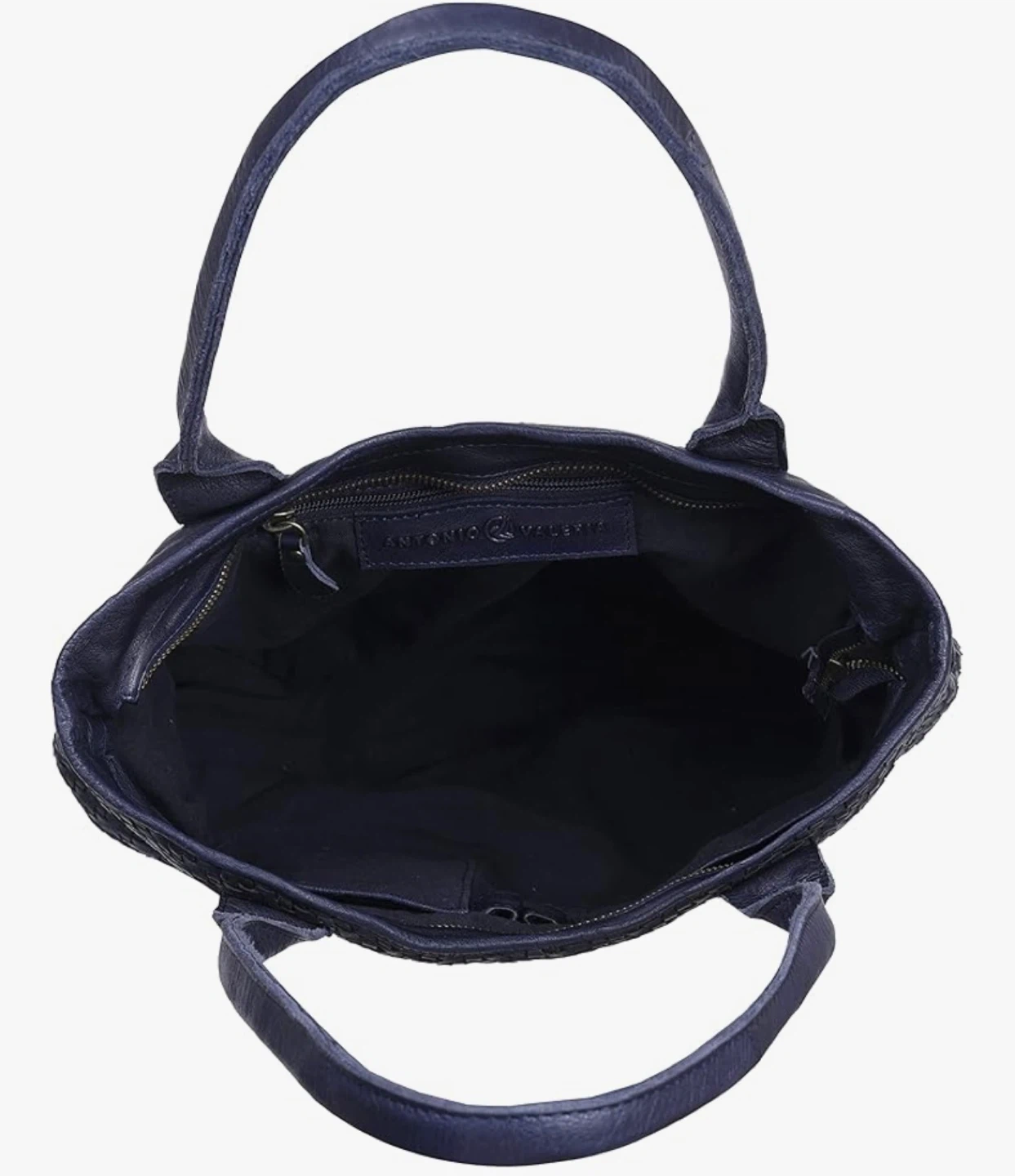 This is a brand new Antonia Valeria Alice braided leather handbag in blue. It's a stylish and practical accessory, perfect for everyday use. The bag features a beautiful woven leather design and sturdy leather straps.