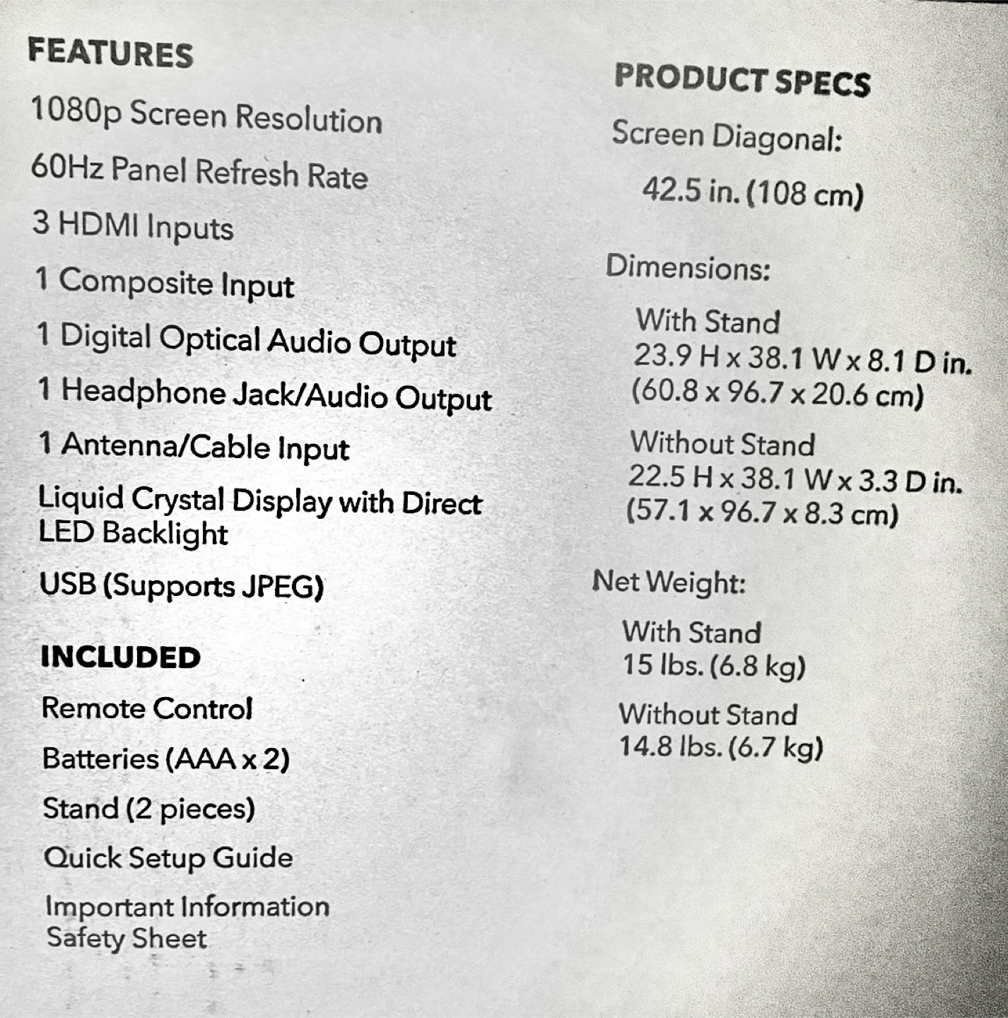 43” Regular HD TV - NOT smart