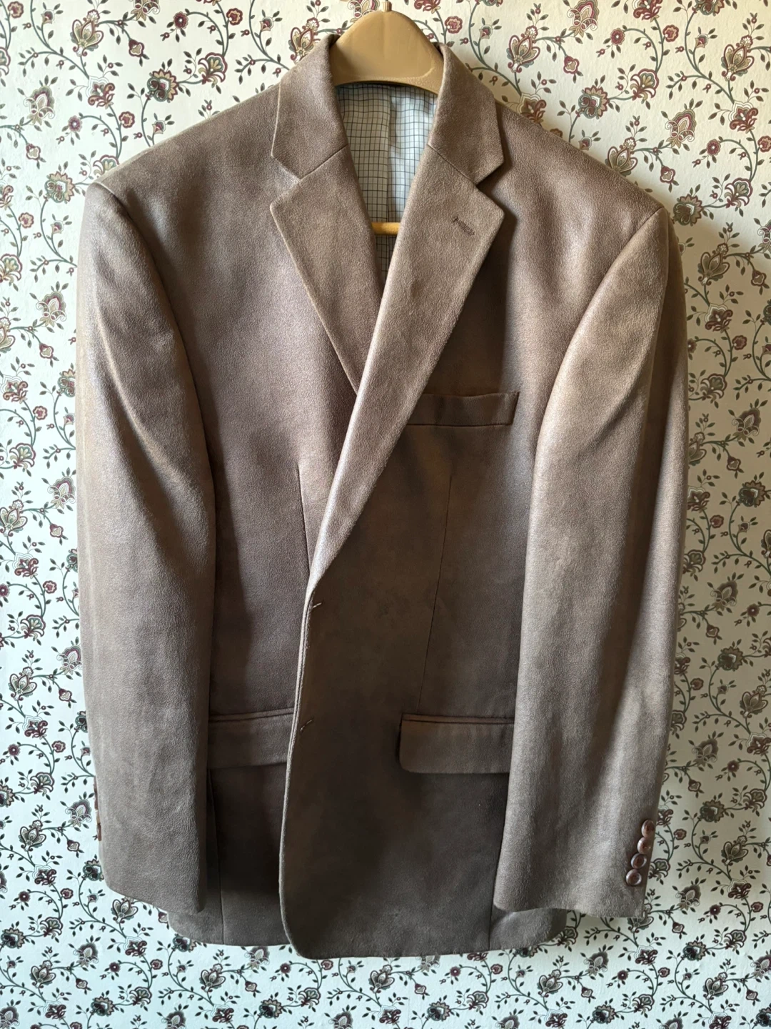 Selling a Lauren Ralph Lauren blazer in a nice brown color! The size is 38S. The outer material has a suede-like texture. The inner lining is 55% cotton and 45% polyester. It's in great condition and ready for a new owner