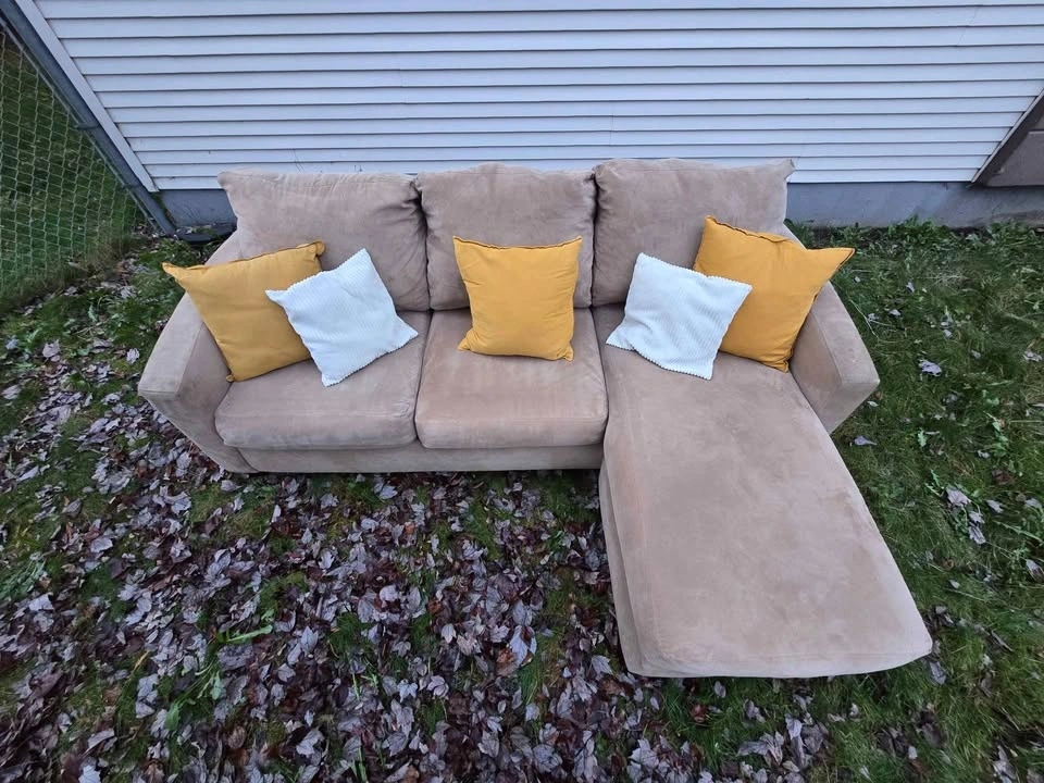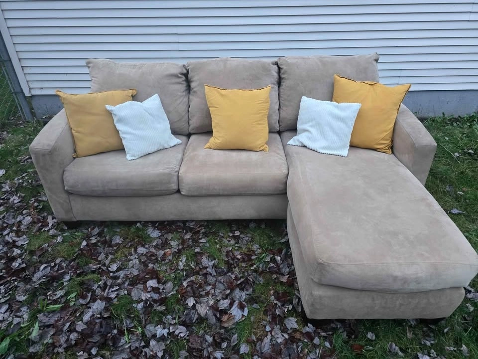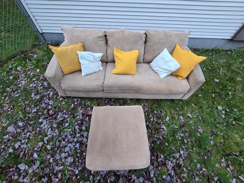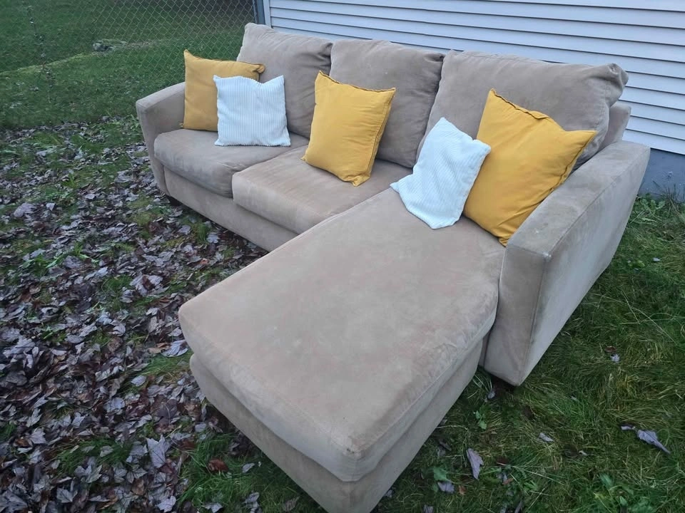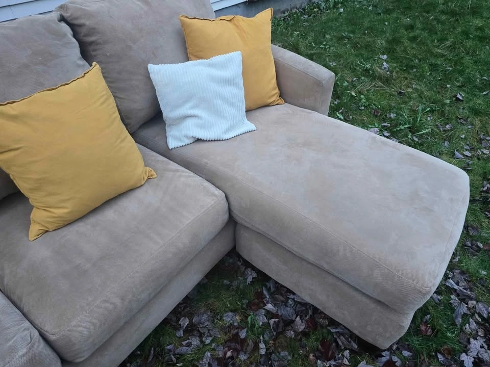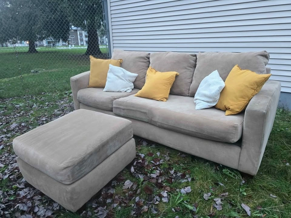 🚚 FREE DELIVERY AVAILABLE 🚚 extremely comfortable beige corduroy 3 seater couch/sofa L-Sectional ottoman πŸ›‹οΈ is in good condition, ottoman is great for putting your feet up. πŸ‘‡πŸΏ βœ… Cleaned, Vacuumed, Spot Treated πŸ’Ž βœ… All Cushion Covers Removable and Machine Washable βœ… Smoke & Pet Free βœ… Firm Cushions βœ… Very well built, solid wood frame βœ… Perfect 6/10 condition (Was Very Well Maintained) βœ… firm cushioned Back & Arm rests βœ… Looks amazing with pillows and throw Blanket πŸ‘‡πŸΏ πŸ’₯Message me for Purchasing & Delivery πŸ’₯