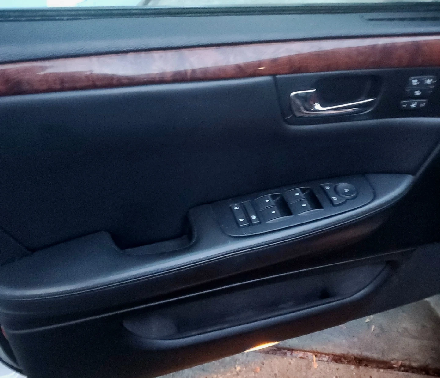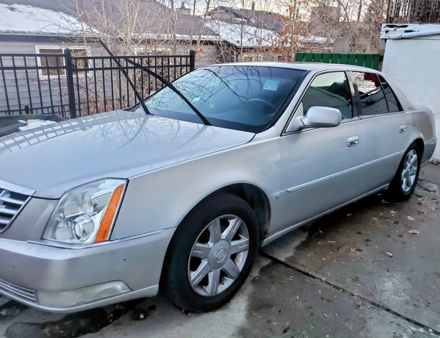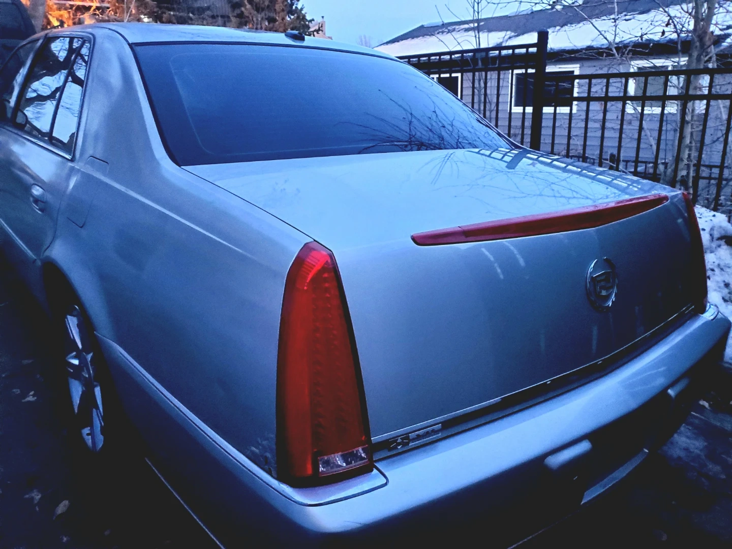 Selling a silver Cadillac DTS sedan. It has black interior with wood trim. The car is used condition. Pwr locks doors seats and windows, ctuise control has 250000 kms