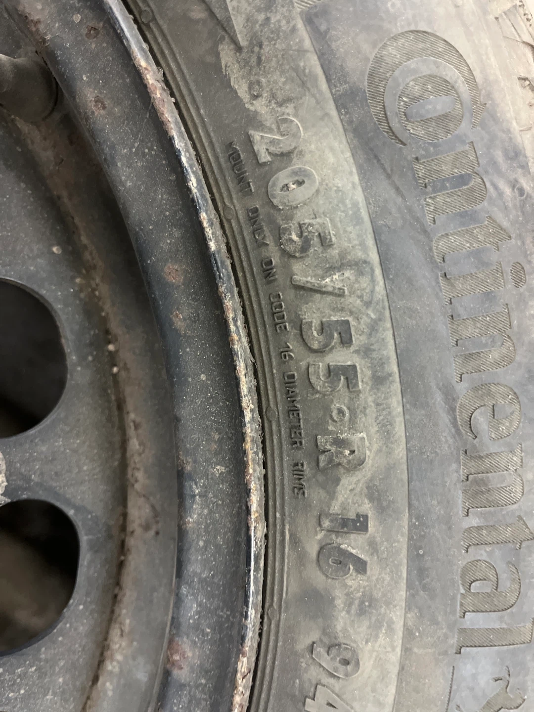 Selling a Continental WinterContact TS830 tire with a size of 205/55R16. It shows some signs of wear. One rims was band and the other 3 is in good conditions . Tire tread still in good conditions
