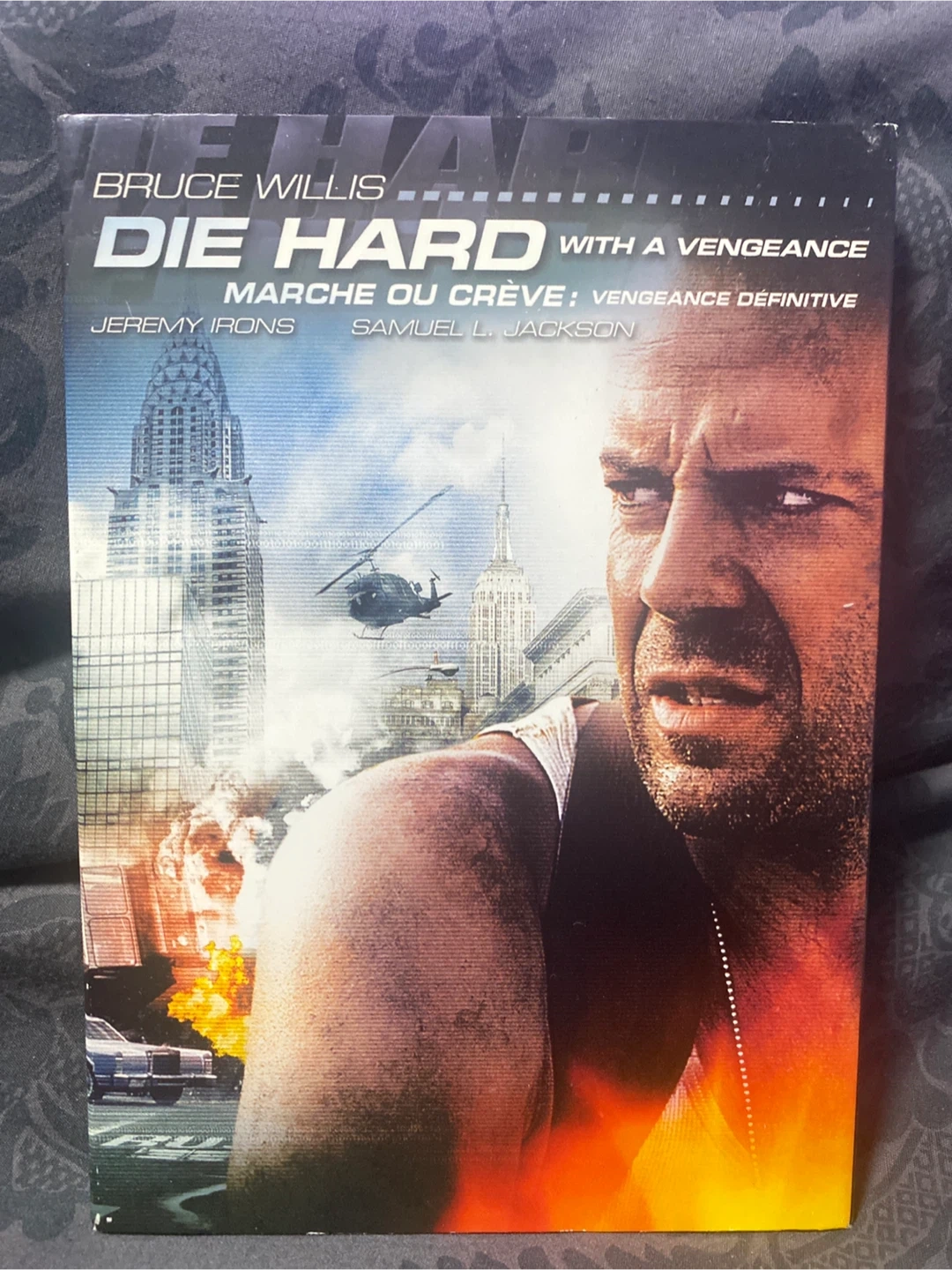 Selling a DVD copy of Die Hard: With a Vengeance starring Bruce Willis, Jeremy Irons and Samuel L. Jackson.