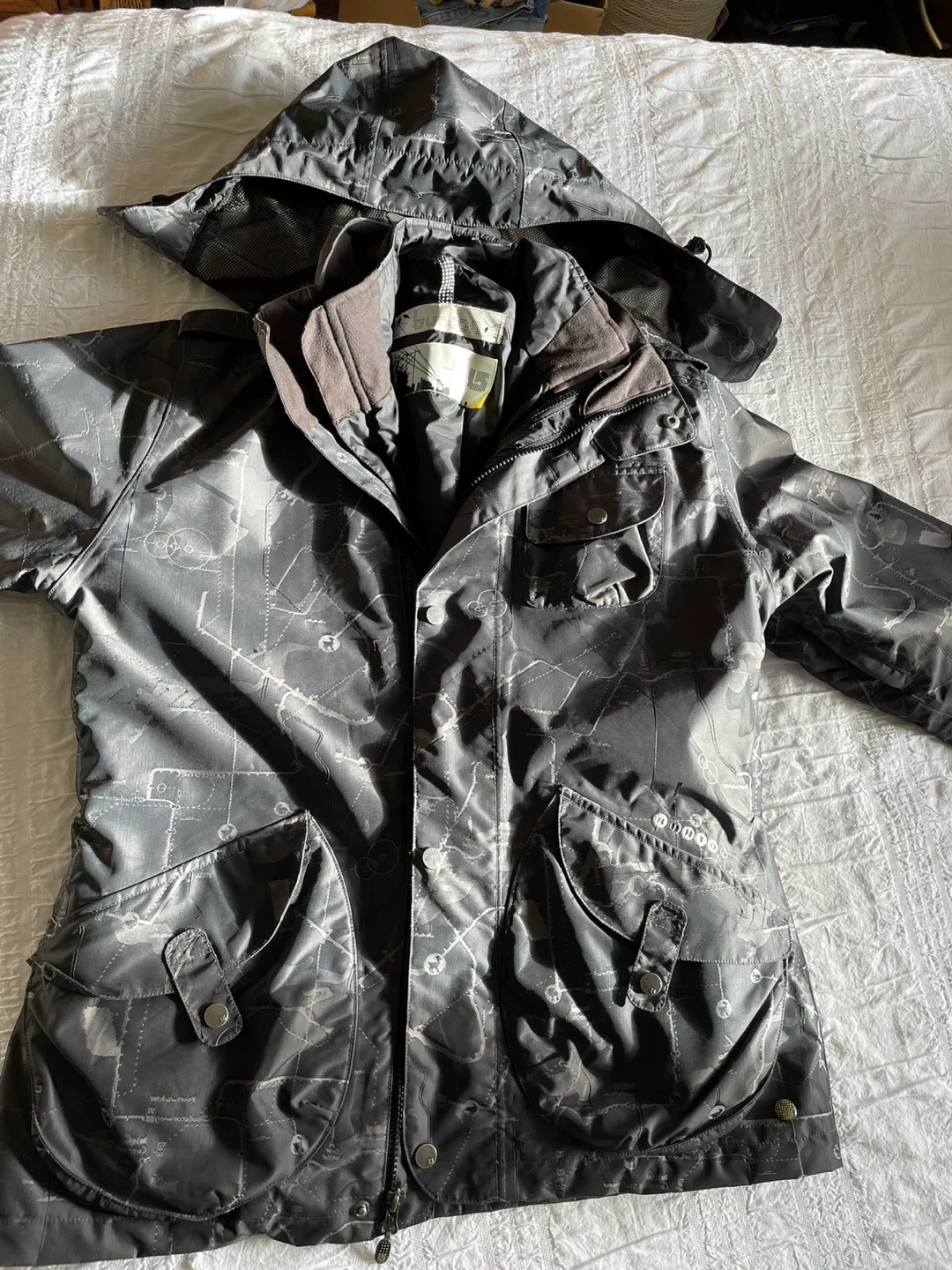 Selling a Burton snowboard jacket in black!/grey. Used only a few times and ready for the slopes. Perfect for staying warm and dry while you're out riding. Tight fitting inner sleeves, extra waist closure up deep snow out.
