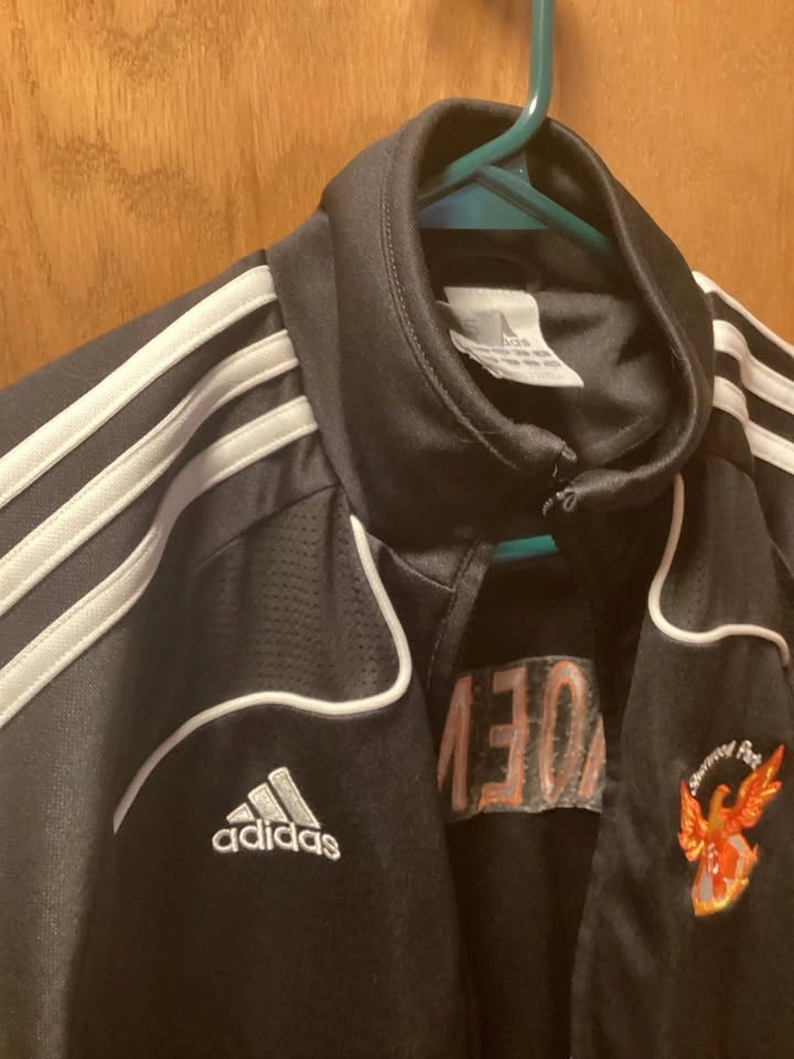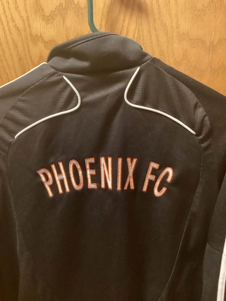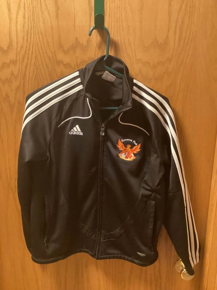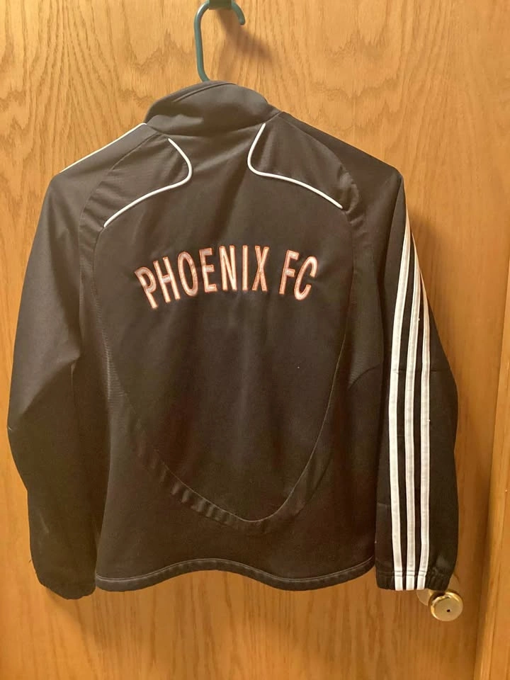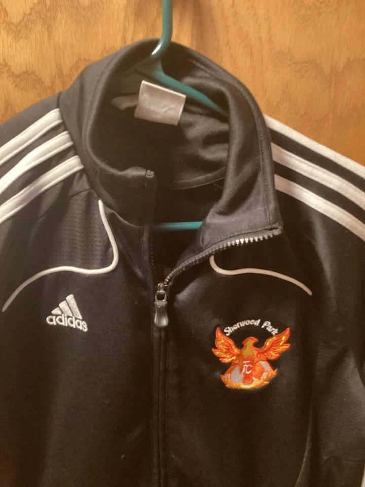 Sherwood Park soccer jacket with Phoenix FC logo. Still in good condition. Has a small mark on the front, as shown. Has been in storage. Boys size medium