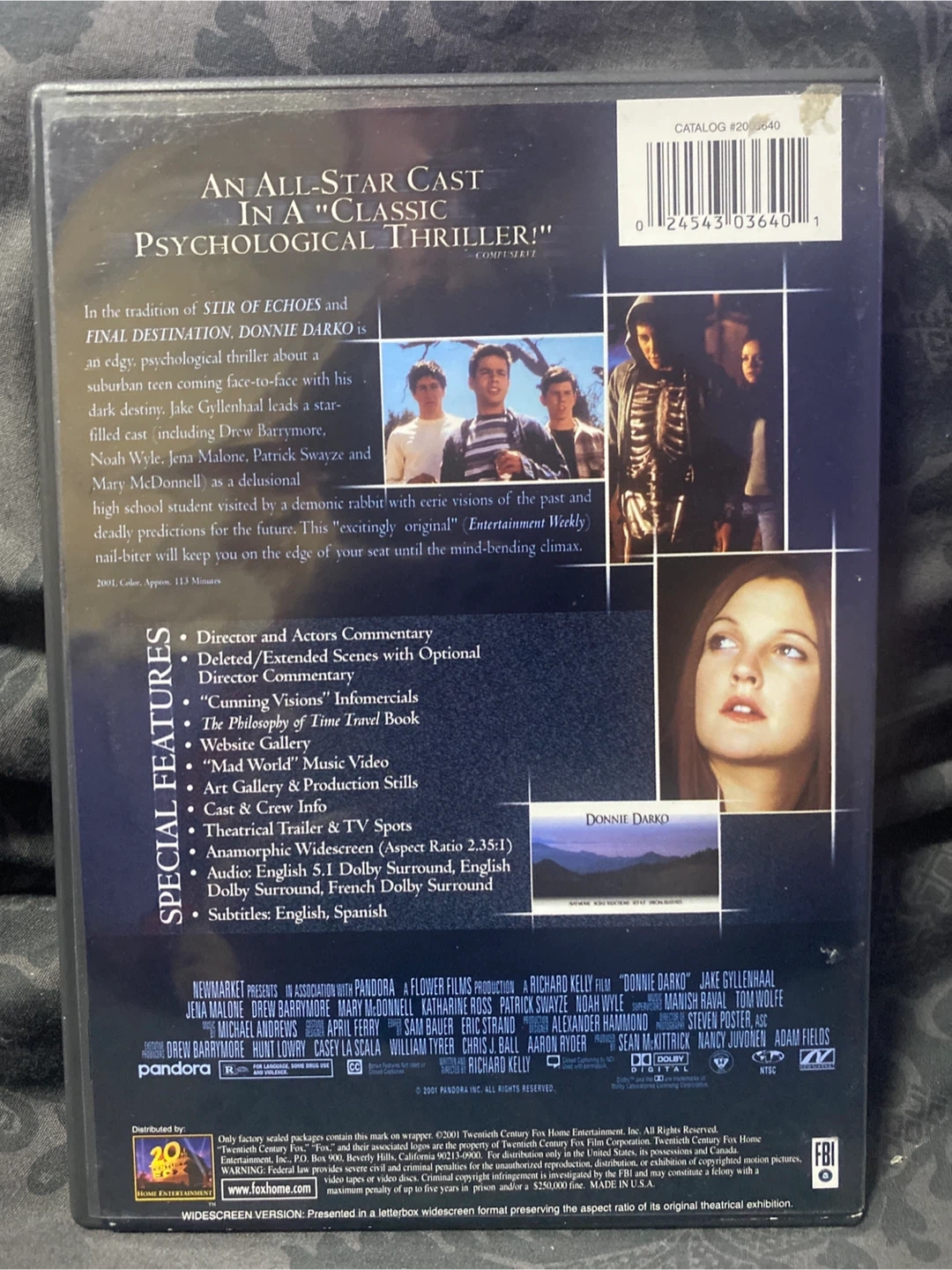 Selling a Donnie Darko DVD. It's an all-star cast in a classic psychological thriller! Includes director and actor commentary, deleted/extended scenes with optional director commentary, and much more! *************Willing to make deals. please check out my other listings. Moving and downsizing and trying to sell unnecessary things.