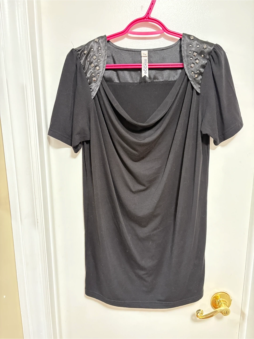 Casual dressy ladies tops all size medium in excellent condition black shimmer, Old Navy, silver shimmer H&M black with studs H&M. $5.00 ea, or all 3- $12.00