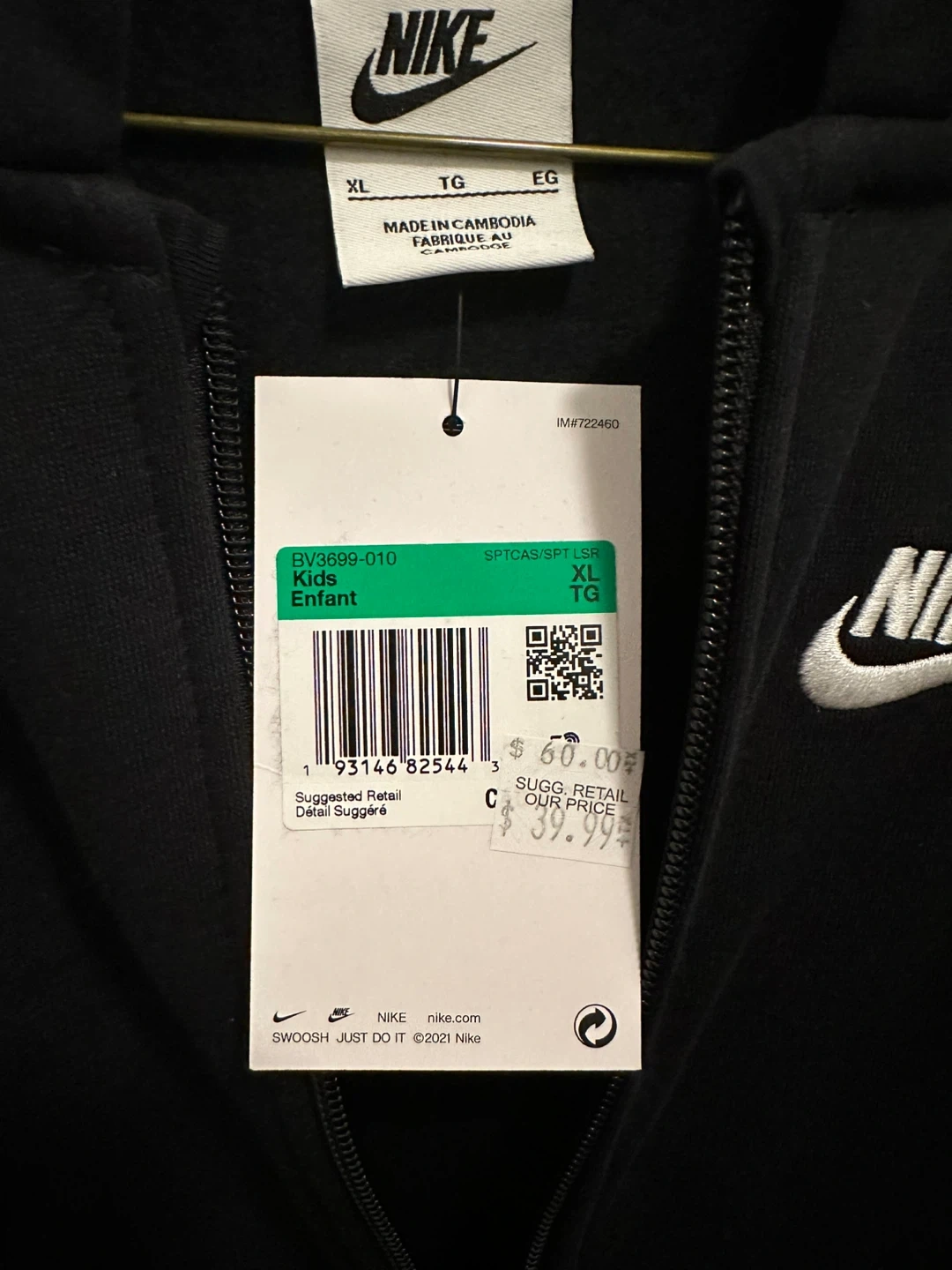 Selling a Nike kids' full zip hoodie in black, size XL. It's in great condition and ready for a new owner! Actually women can fits too!