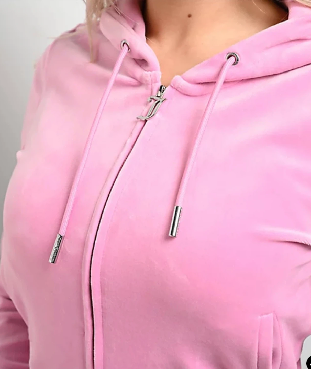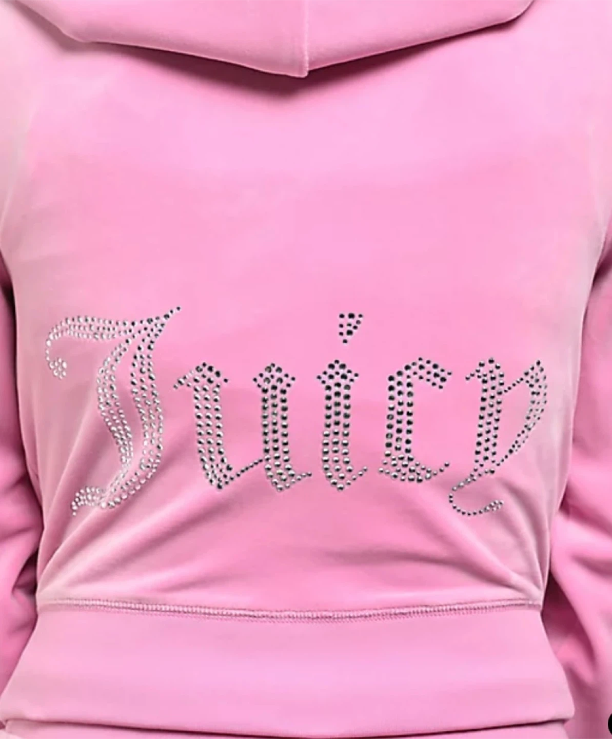 Selling a cute Juicy Couture tracksuit in pink velour! The set includes a zip-up hoodie and matching pants. The hoodie has the Juicy logo on the back in rhinestones, and so do the pants. It's in great condition and perfect for a comfy and stylish look. Size XL, new with tags
