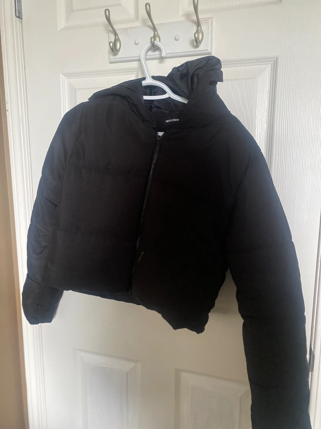 Selling a black puffer jacket from PrettyLittleThing in size small! It's in great condition and ready for a new owner.
