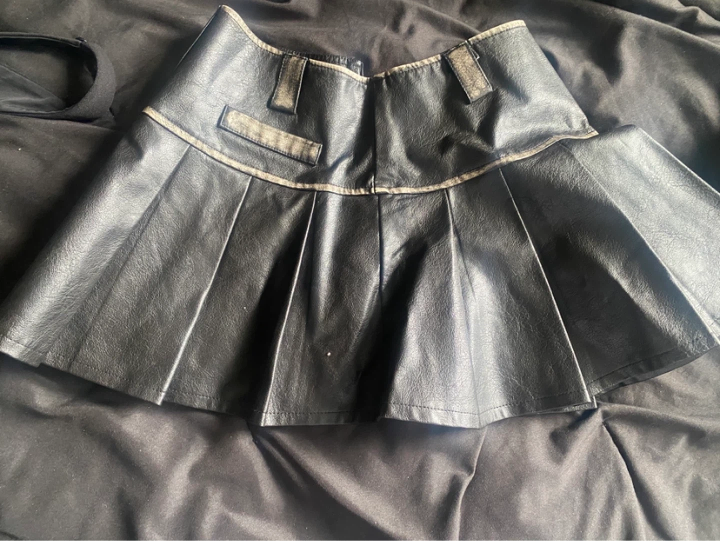 Selling a black pleated mini skirt. It's in great condition and would be a stylish addition to any wardrobe! The skirt has a classic pleated design and a comfortable fit.