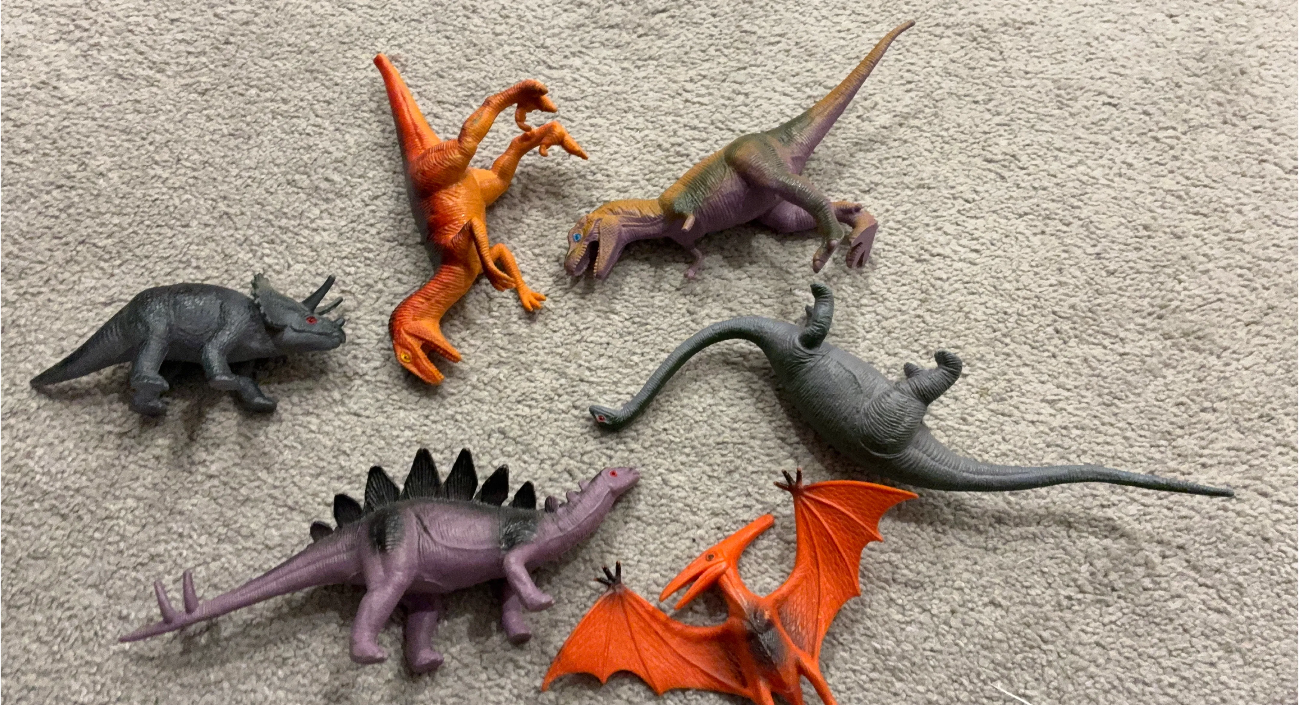 Selling a set of dinosaur toys! Includes a variety of different dinosaurs in various colours and sizes. Perfect for any young dinosaur enthusiast!