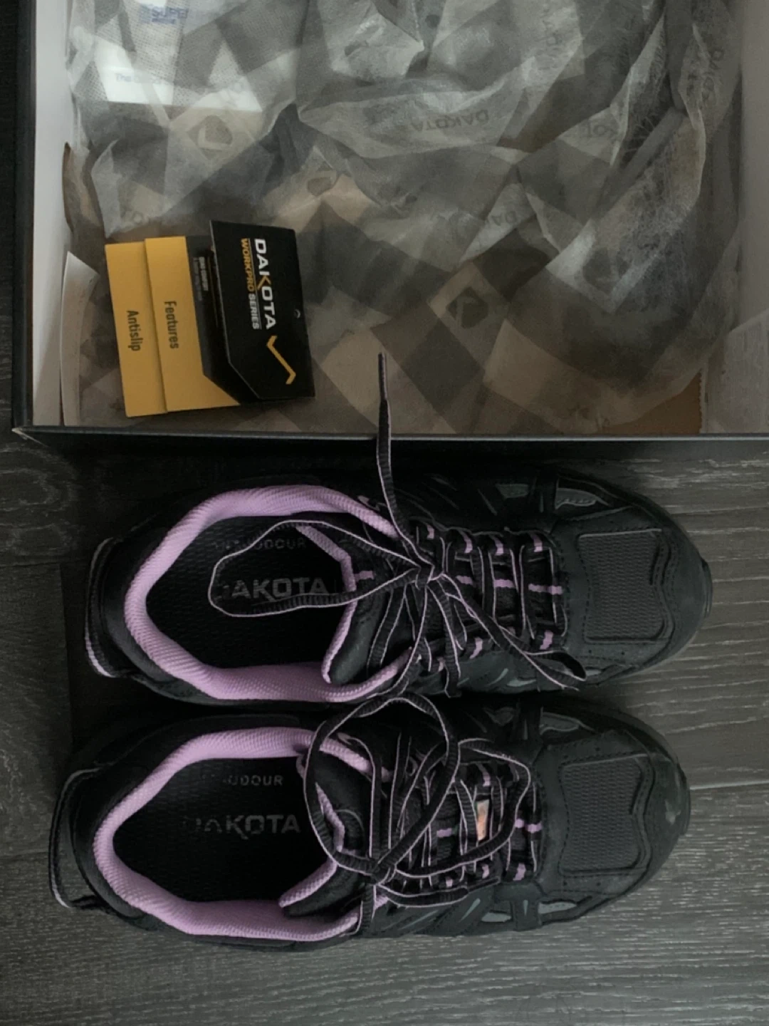 Selling a pair of Dakota Safety Shoes in size 7. They're in great condition and come with the original box. The shoes are purple and black, and feature Armour Flex technology for added comfort and an anti-slip sole. Originally bought for $159.99!