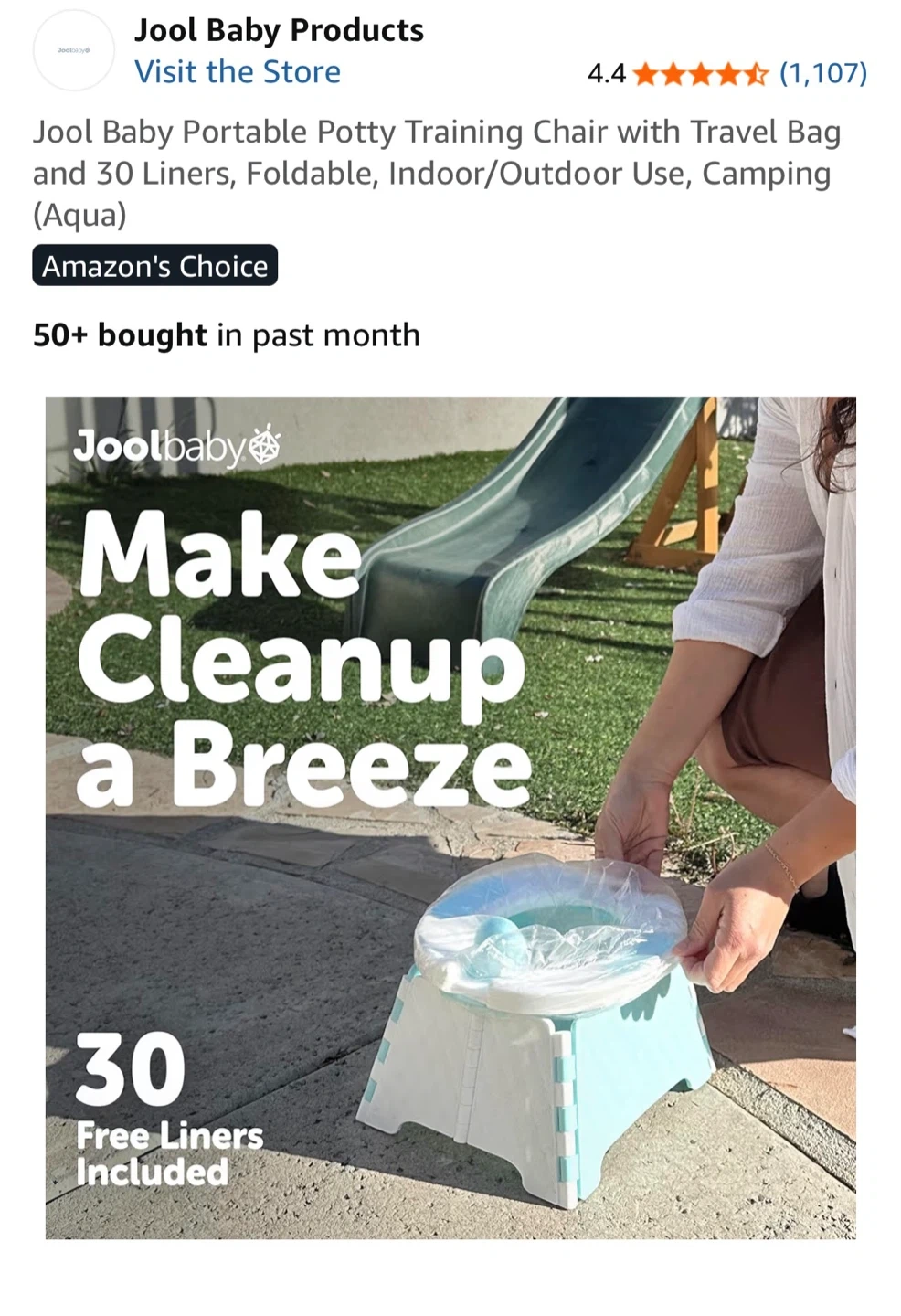 Selling a new (unused) Jool Baby portable potty training chair in aqua. It's foldable, making it great for indoor/outdoor use and camping! It also comes with a travel bag.