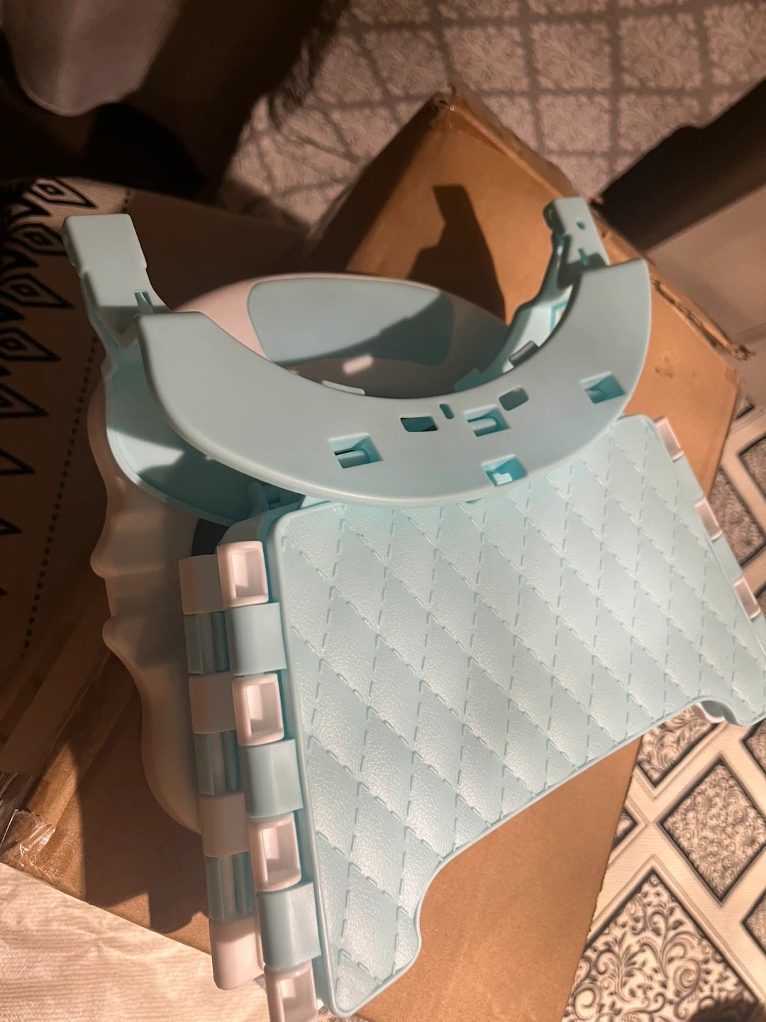 Selling a new (unused) Jool Baby portable potty training chair in aqua. It's foldable, making it great for indoor/outdoor use and camping! It also comes with a travel bag.