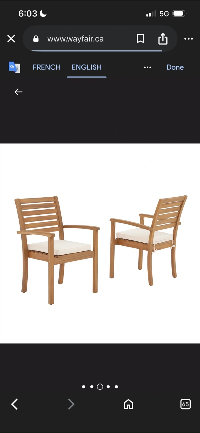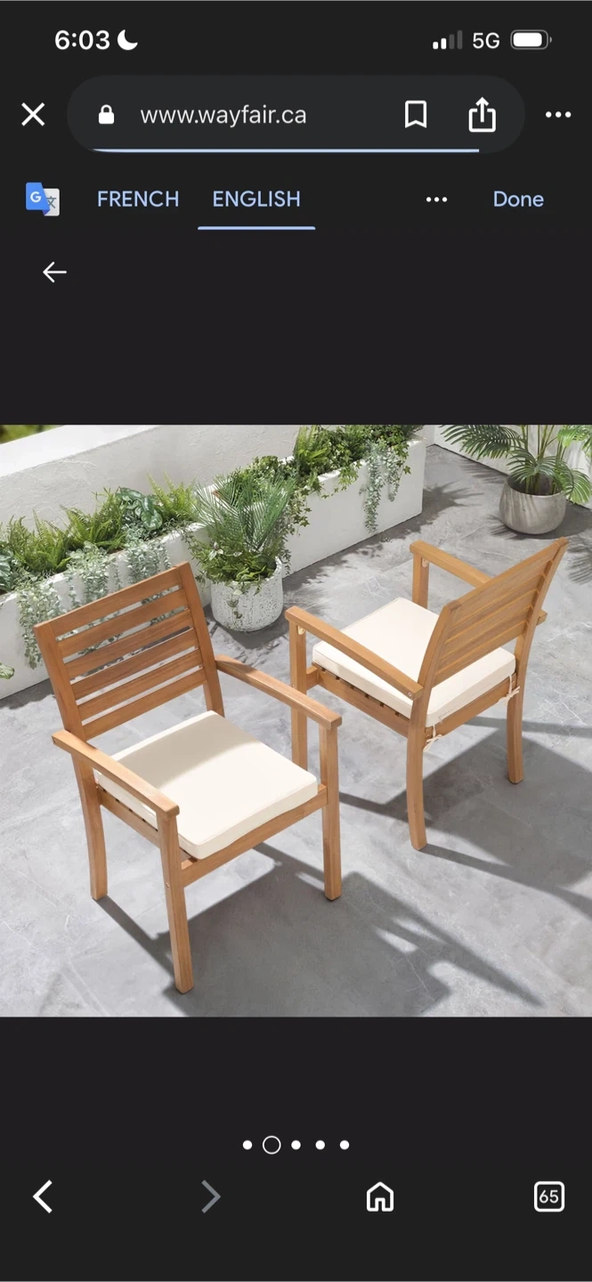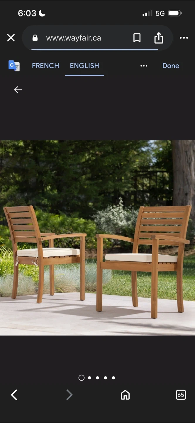 New Stackable outdoor dining chair acacia cushion (Set of 2)