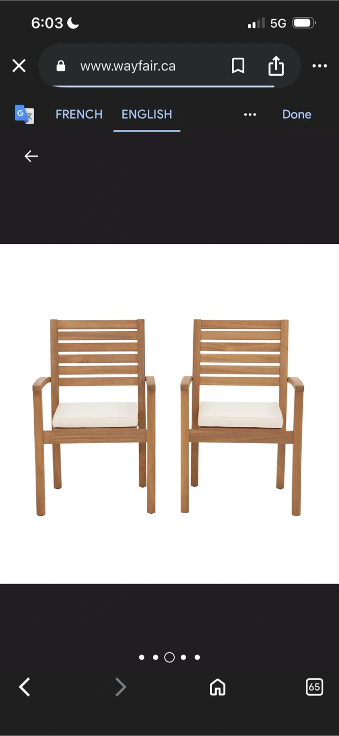 New Stackable outdoor dining chair acacia cushion (Set of 2)