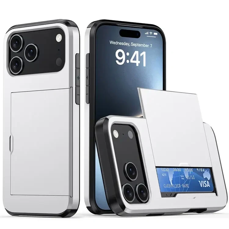Selling a Silver, iPhone 17, Military Grade Wallet Case with a built-in Card Holder! It can store up to 2 cards. Offers Maximum protection for your phone!