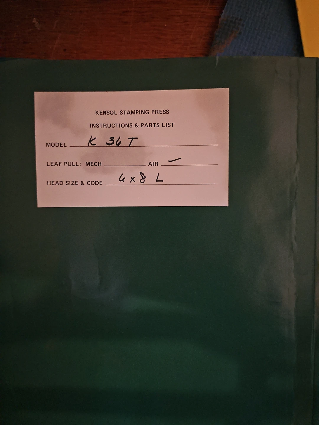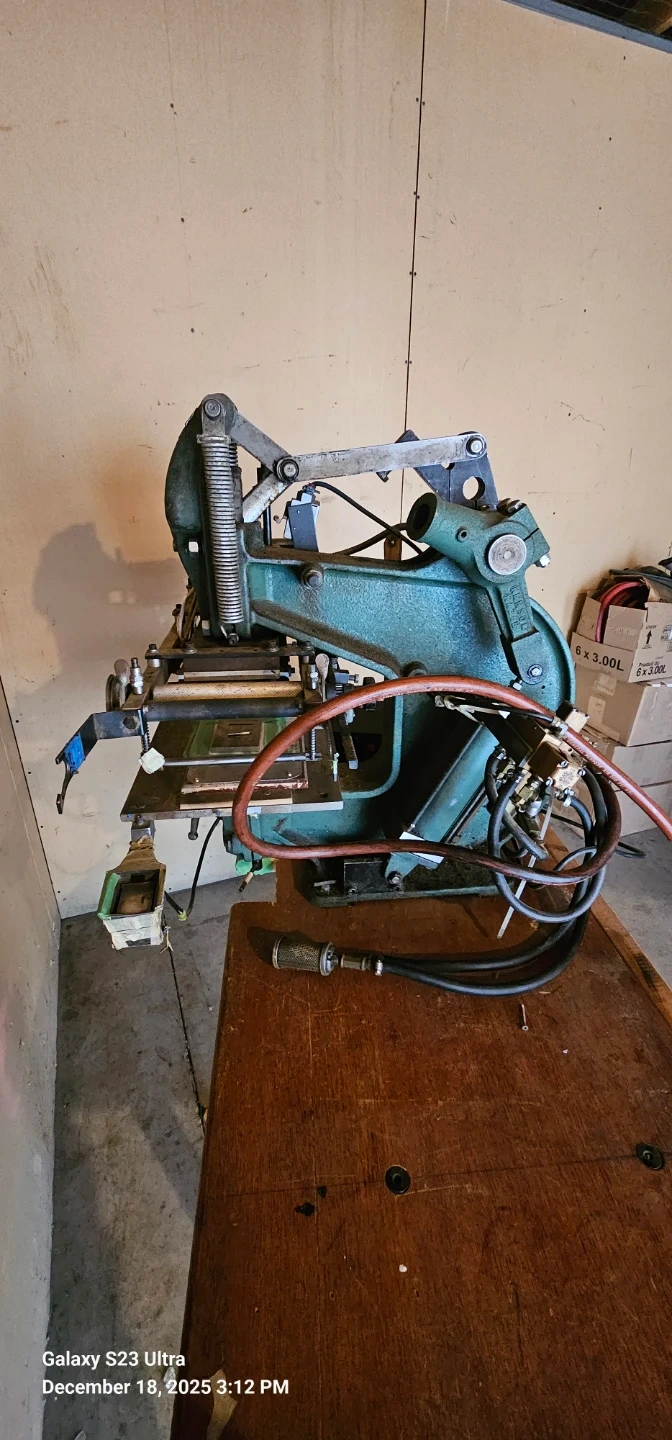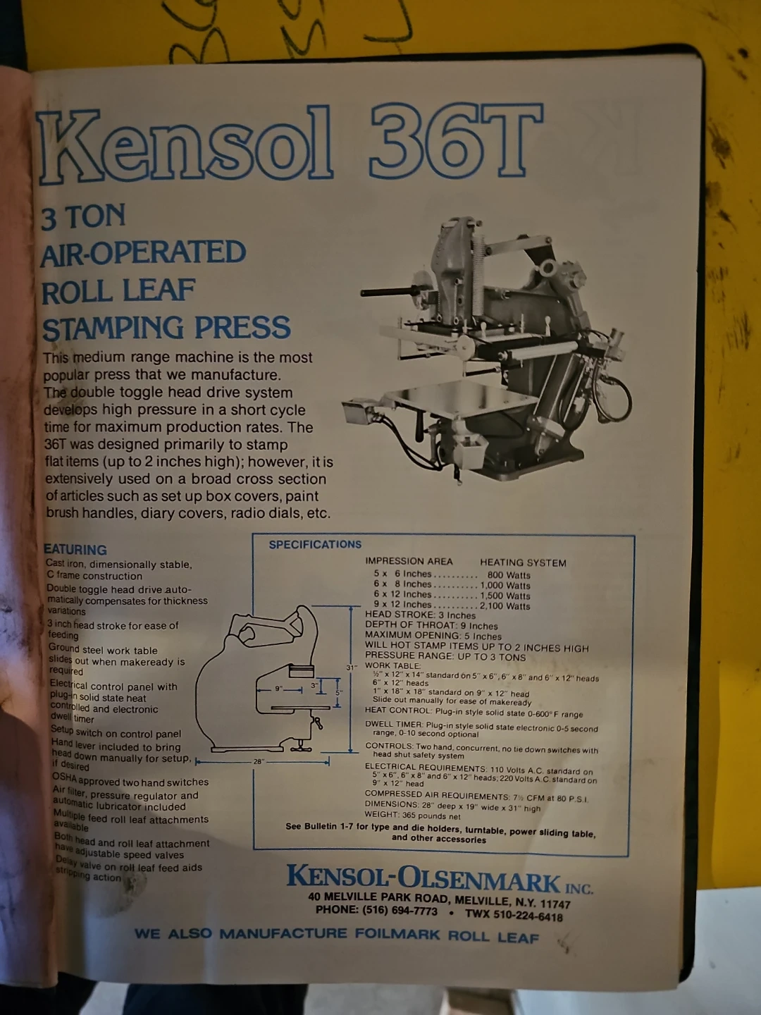 Selling a Kensol 36T air-operated roll leaf stamping press. This medium range machine is designed to stamp roll items up to 2 inch(es) high.