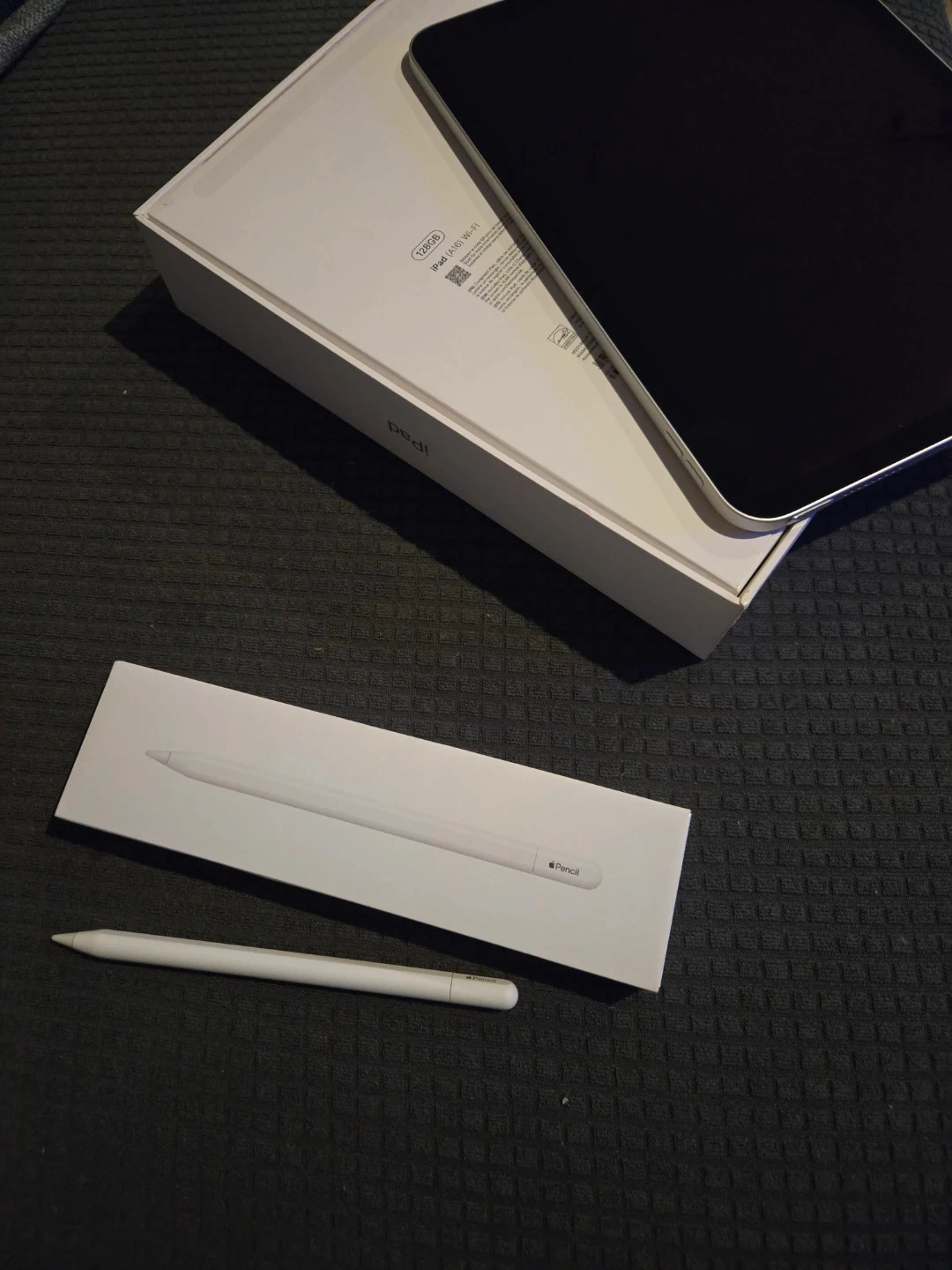 Selling an Apple iPad (6th generation) with 128GB of storage and Wi-Fi connectivity. It also comes with an Apple Pencil! The box is included.