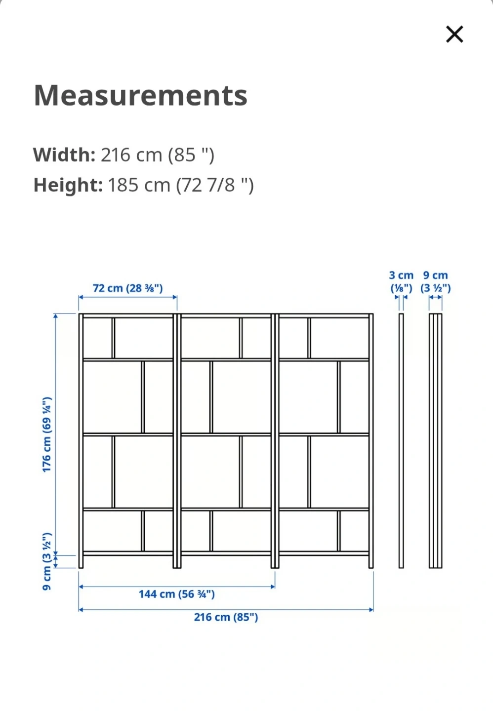 Selling a folding room divider screen with a black frame and white panels. It's in great condition and perfect for adding privacy or dividing a space in your home or office. The geometric design is quite modern!