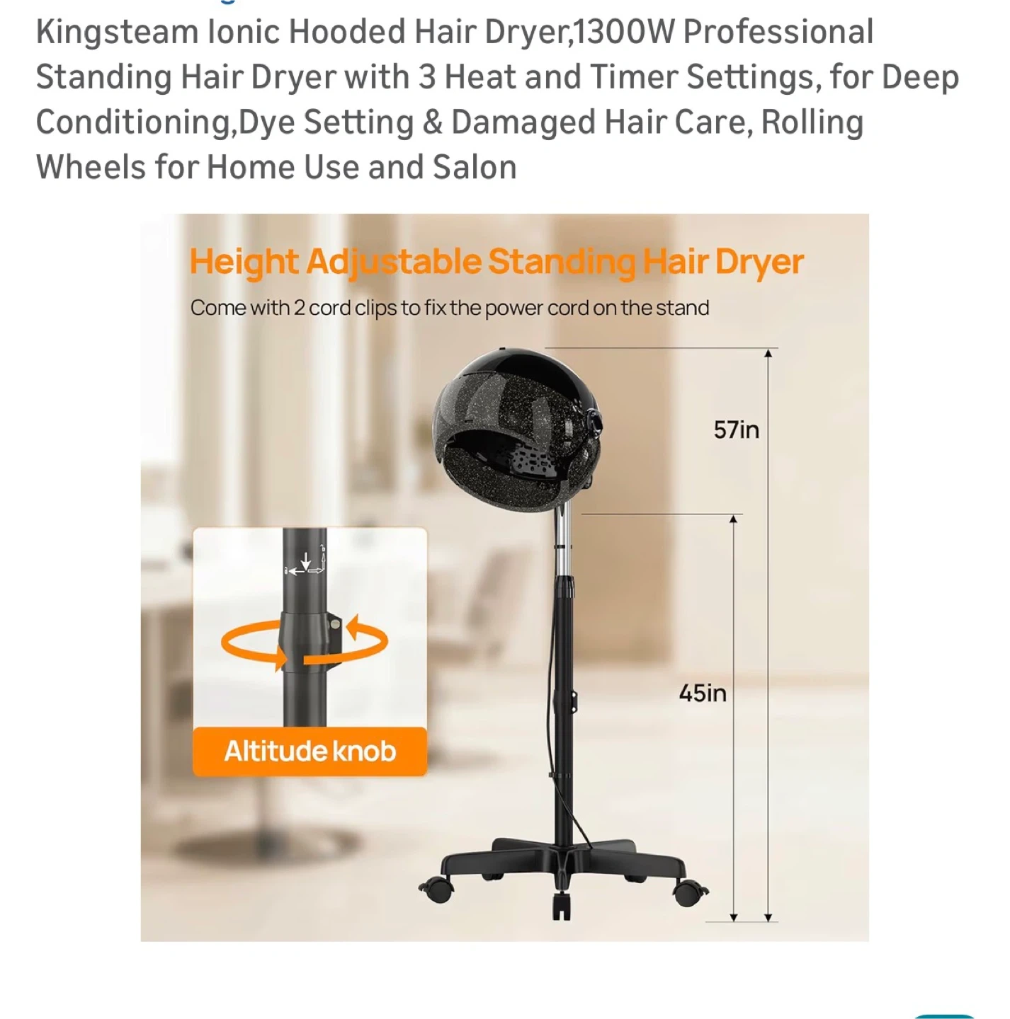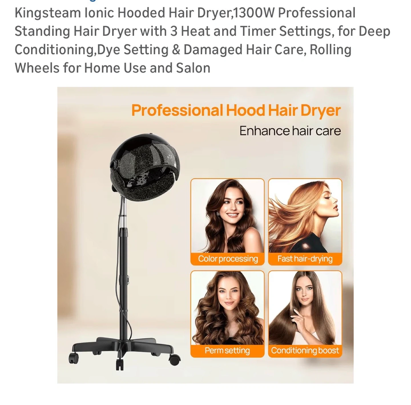 Get salon-quality hair care at home with this Kingsteam Ionic Hooded Hair Dryer! It's a professional standing hair dryer with: