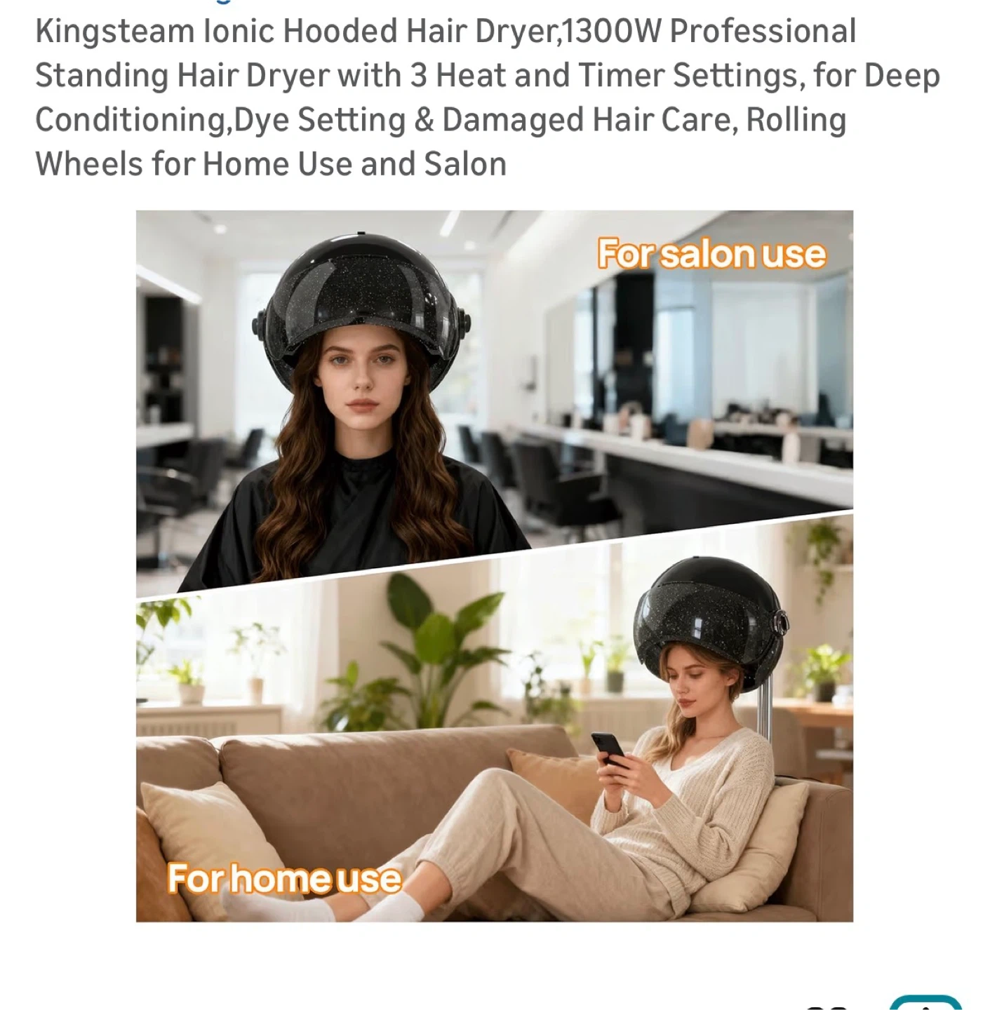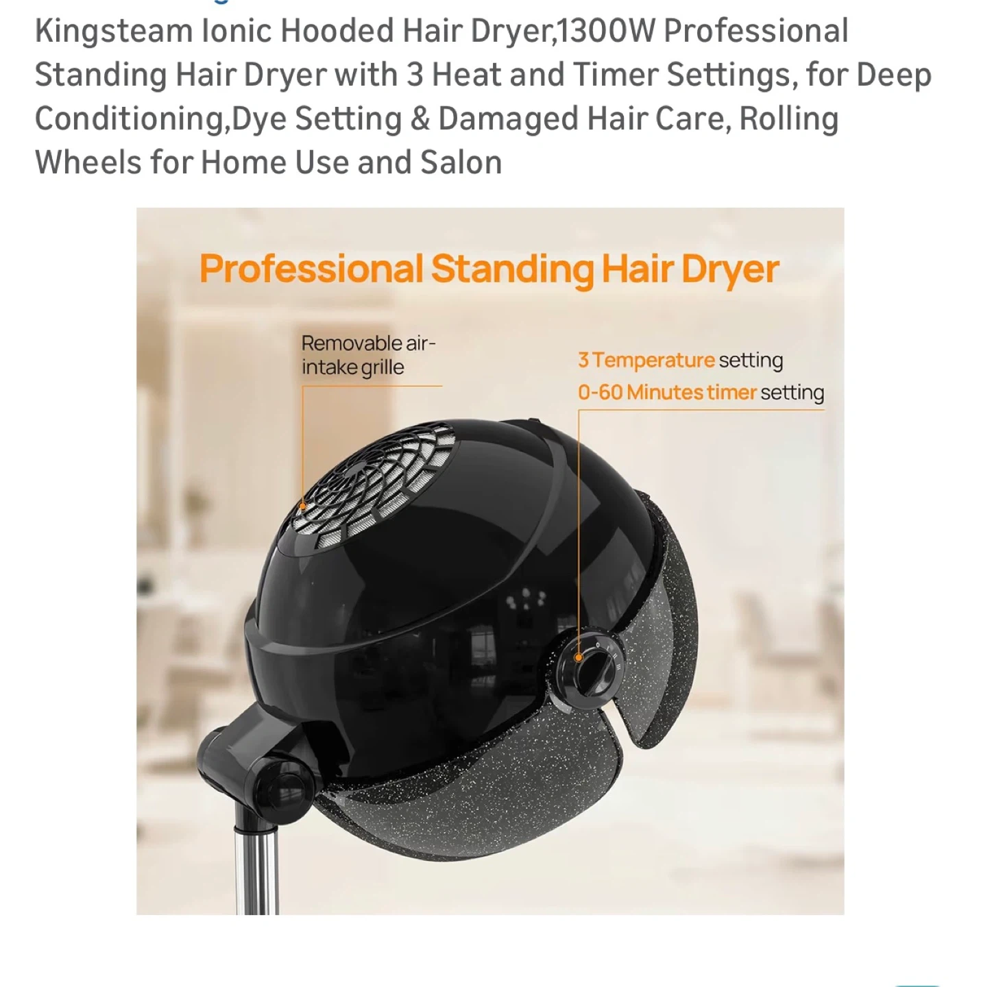 Get salon-quality hair care at home with this Kingsteam Ionic Hooded Hair Dryer! It's a professional standing hair dryer with: