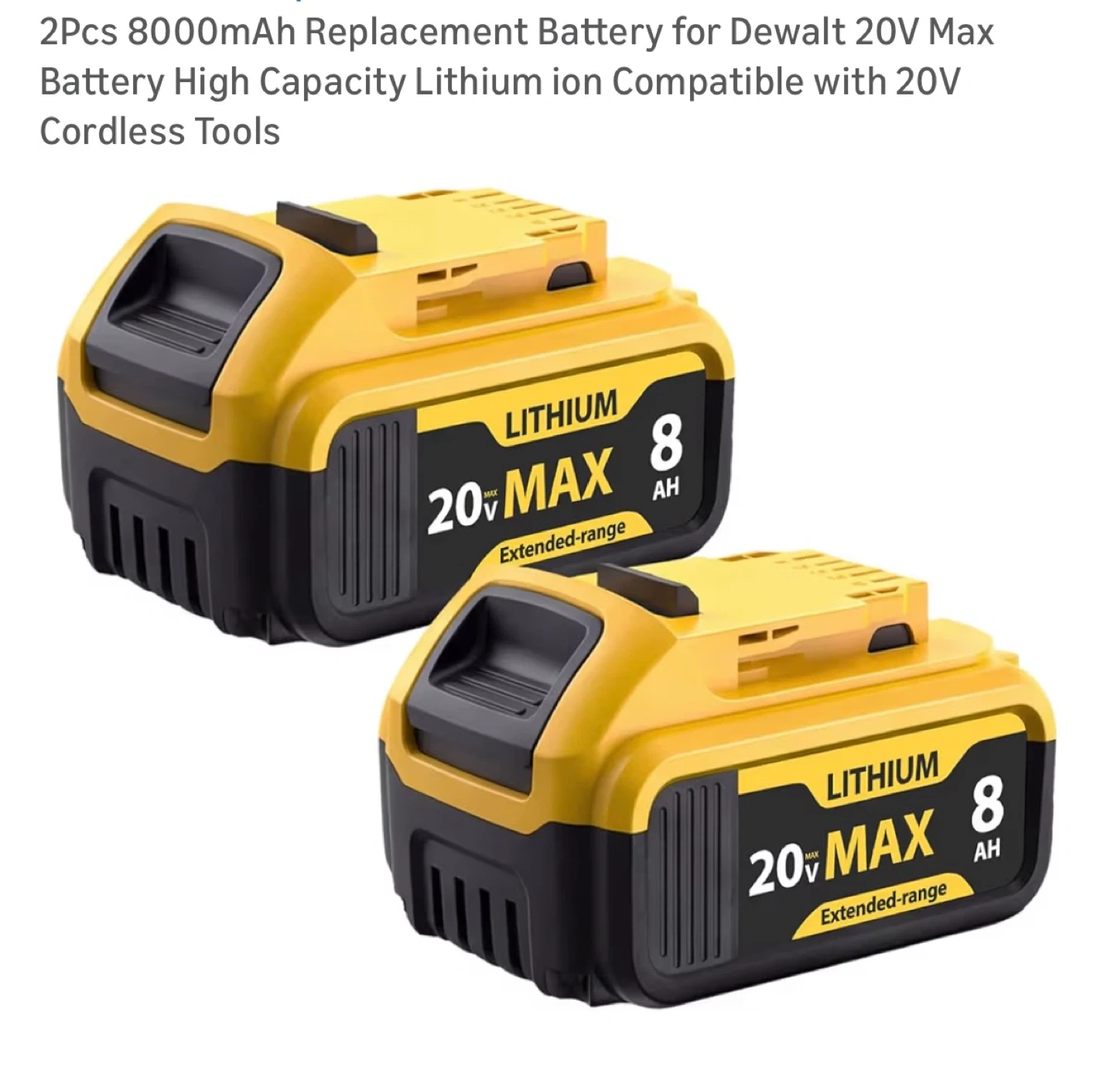Buy & SellDewalt 20V Max 8000mAh Replacement BatteryDewalt 20V Max 8000mAh Replacement Battery$402Pcs 8000mAh Replacement Battery for Dewalt 20V Max Battery High Capacity Lithium ion Compatible with 20V Cordless Tools Brand new in boxConditionNewBrandDewaltWHERE TO MEETPio pio 8View MapSELLERverifiedFrancesHell's Kitchen20214 reviews3 chats·2 favorites·30 viewsSEND CHAT TO SELLERHi Frances! I’m interested in your listing.Hi Frances! I’m interested in your listing.Get the Karrot app to chatSign In to chat